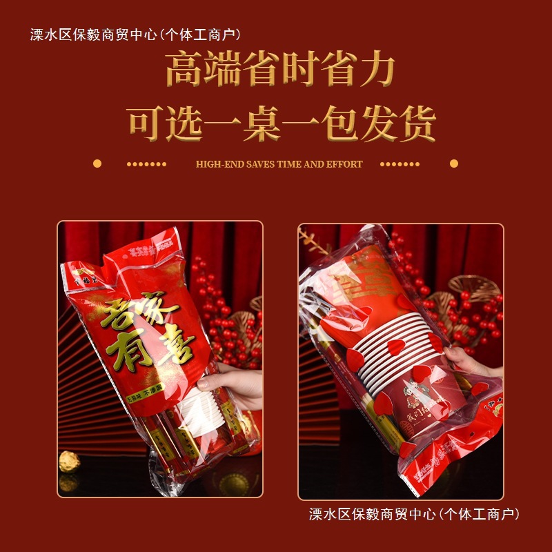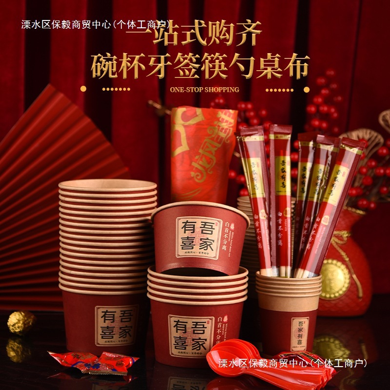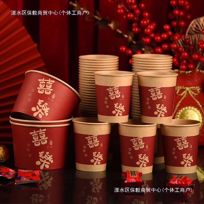 一次性纸碗结婚喜宴婚礼家用喜碗大红色婚庆用品加厚本色纸杯纸碗