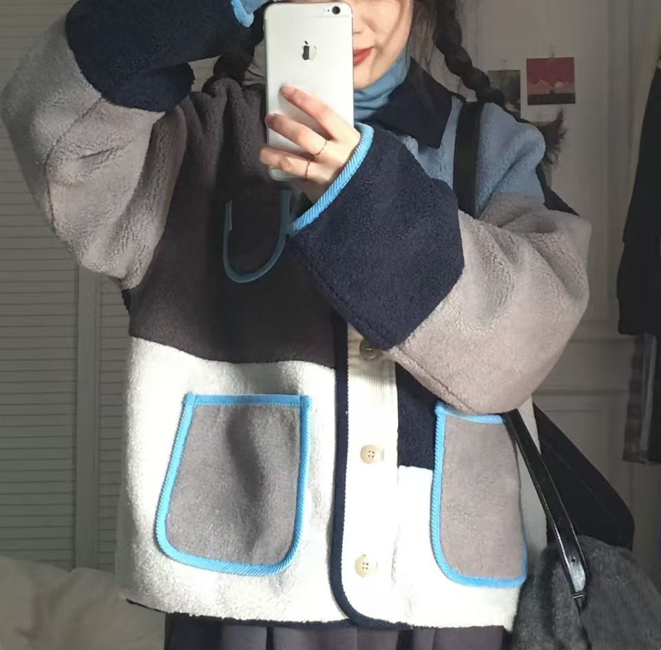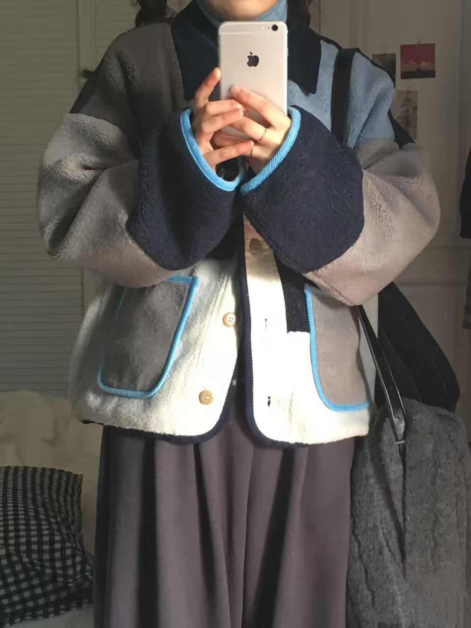 2025年秋季新款"色彩马蒂斯"复古拼色多彩格廓形宽松羊羔毛短外套,批发价,价格:138,厂家直销,2025年秋季新款"色彩马蒂斯"复古拼色多彩格廓形宽松羊羔毛短外套,免费拿样。