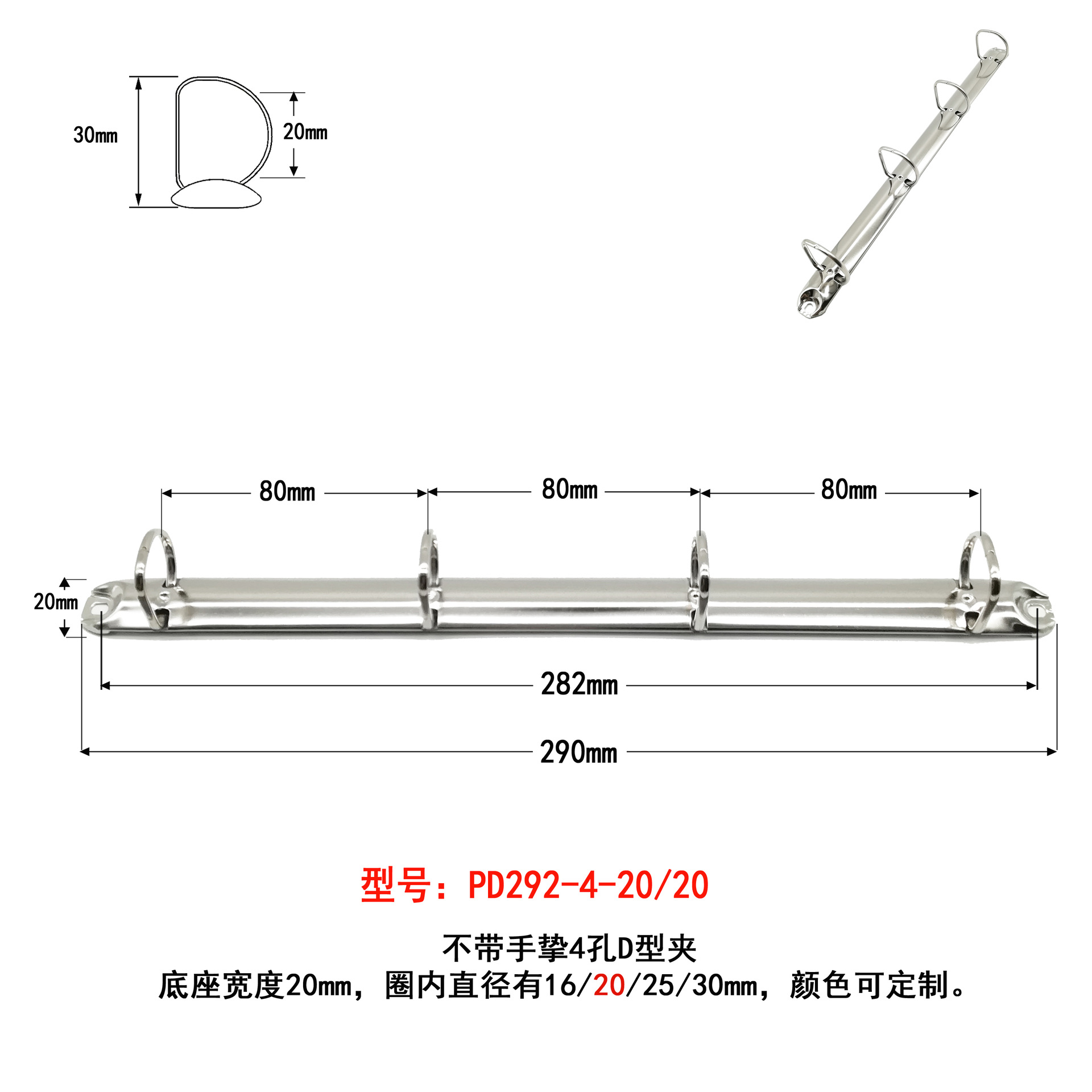 手开式4孔夹不锈钢颜色活页夹2厘米内径D形活页扣金属夹装订铁夹