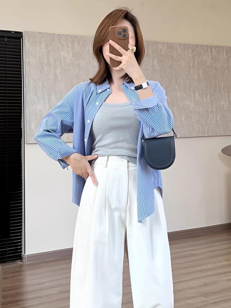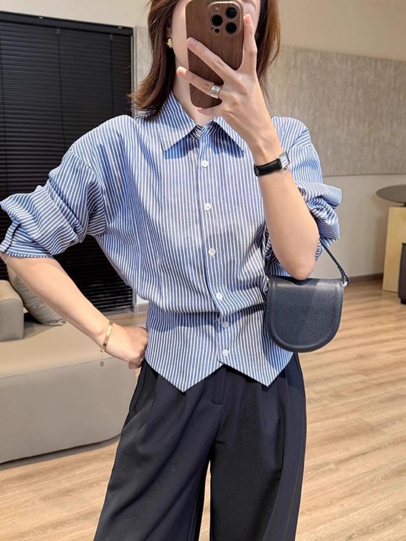 法式高级感条纹女士衬衫女装早秋季新款收腰上衣通勤职业衬衣爆款,批发价,价格:65,厂家直销,法式高级感条纹女士衬衫女装早秋季新款收腰上衣通勤职业衬衣爆款,免费拿样。