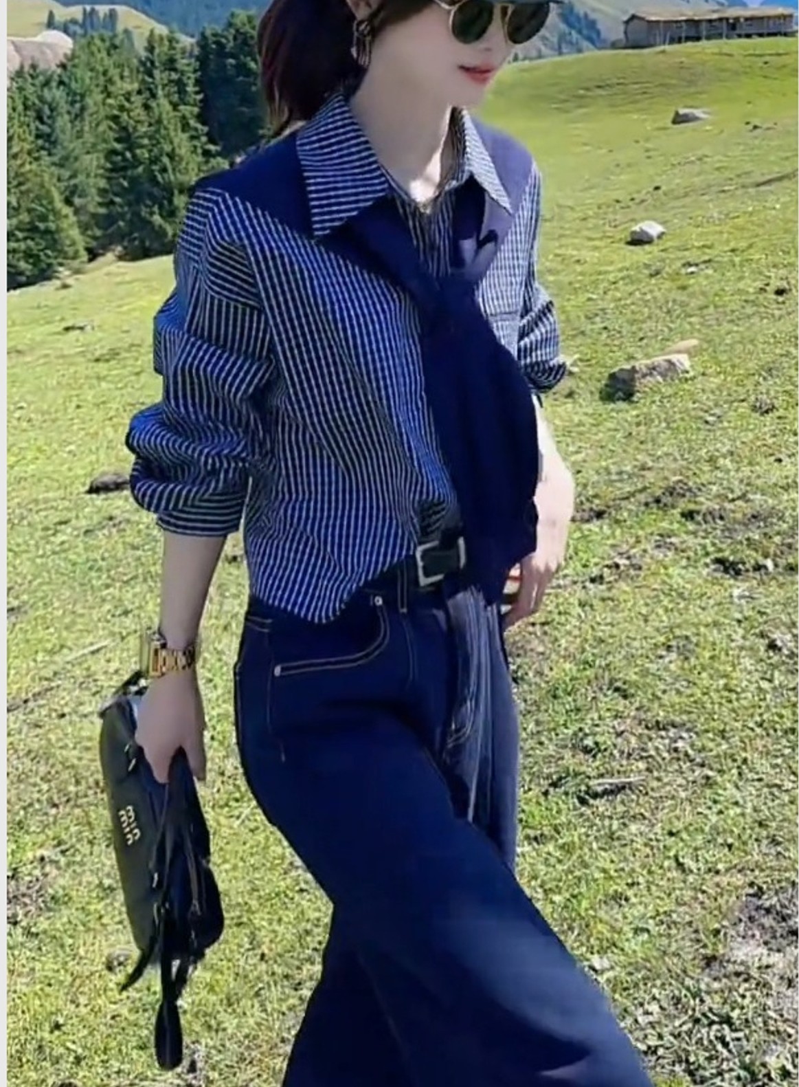 时尚条纹长袖衬衫女早秋新款洋气减龄衬衣百搭宽松遮肚子休闲上衣,批发价,价格:25,厂家直销,时尚条纹长袖衬衫女早秋新款洋气减龄衬衣百搭宽松遮肚子休闲上衣,免费拿样。