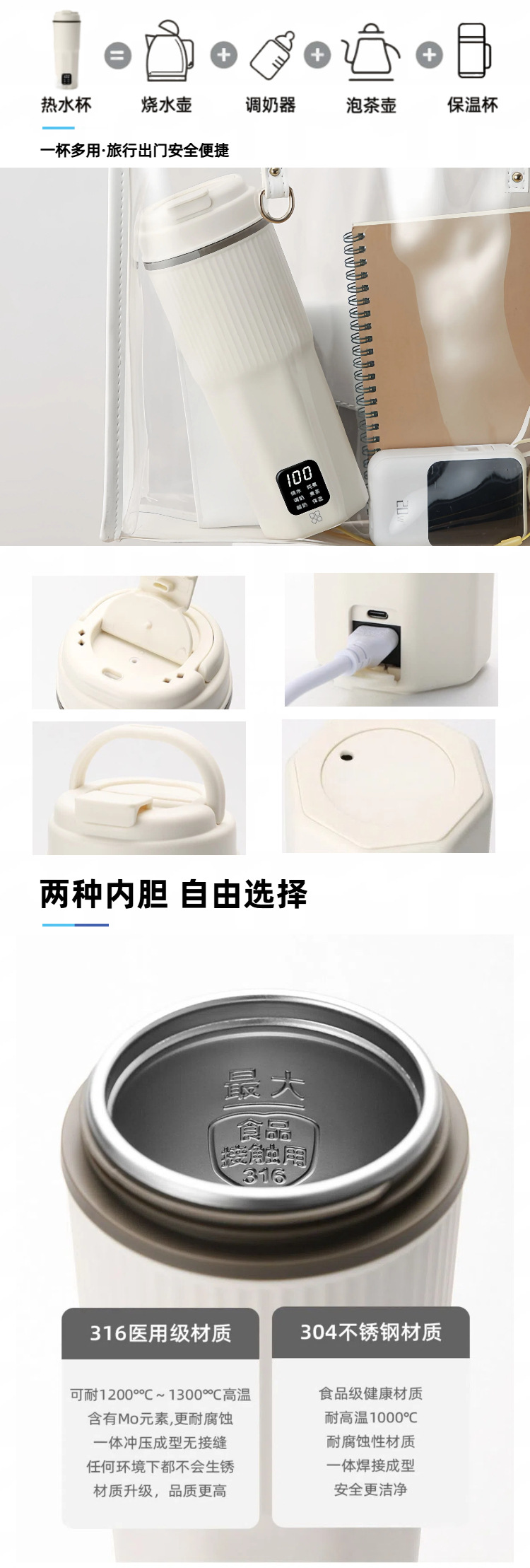 产品为分带Type-C接口,主要用来保温,也可以不带Type-C 接口。