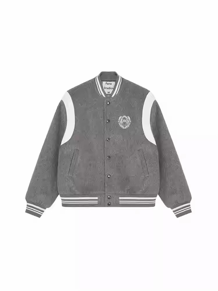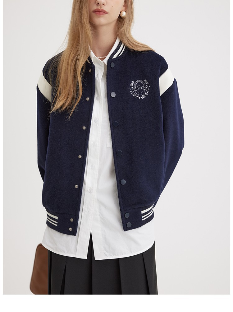 范洛Fano 棒球服外套女秋季复古学院风刺绣减龄毛呢料设计感上衣