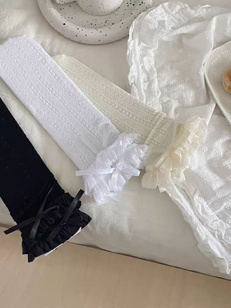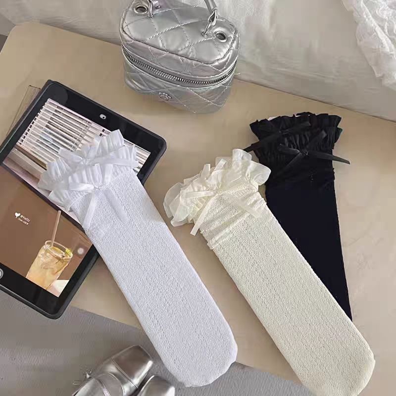 蝴蝶结袜子夏季新款韩系镂空蕾丝无跟堆堆袜纯色花边女士中筒袜,批发价,价格:3.3,厂家直销,蝴蝶结袜子夏季新款韩系镂空蕾丝无跟堆堆袜纯色花边女士中筒袜,免费拿样。