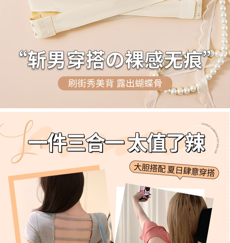 新款可拆卸胸垫轻薄三合一无肩带运动文胸交叉侧扣内衣一字围抹胸