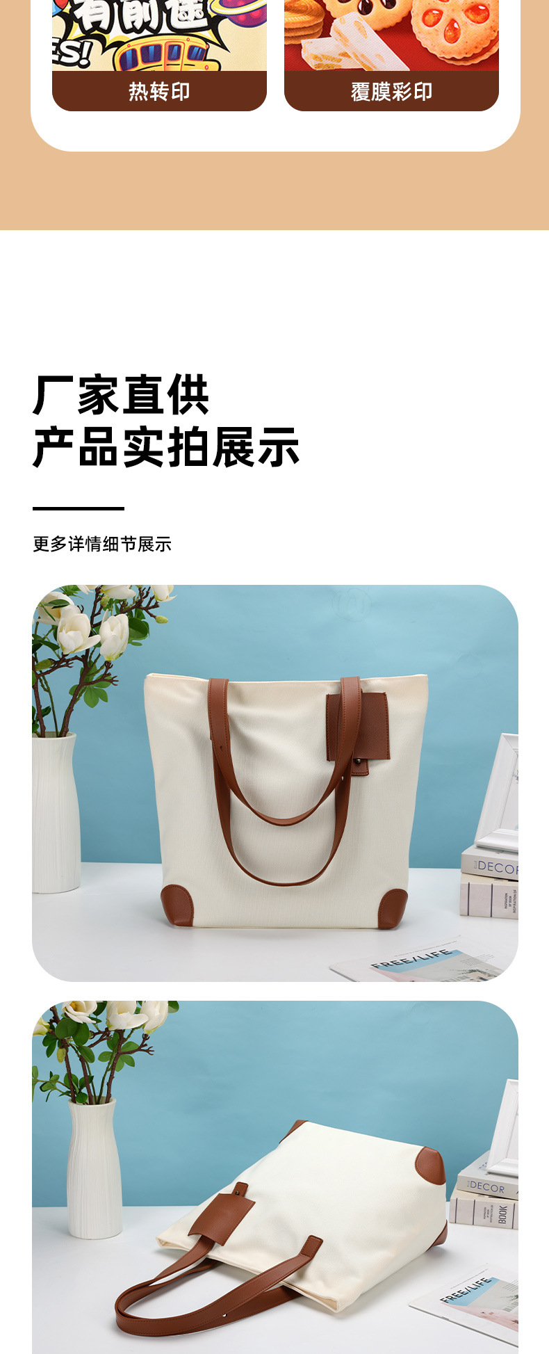 新款大容量帆布托特包可加印logo手提帆布购物袋伴手礼品袋