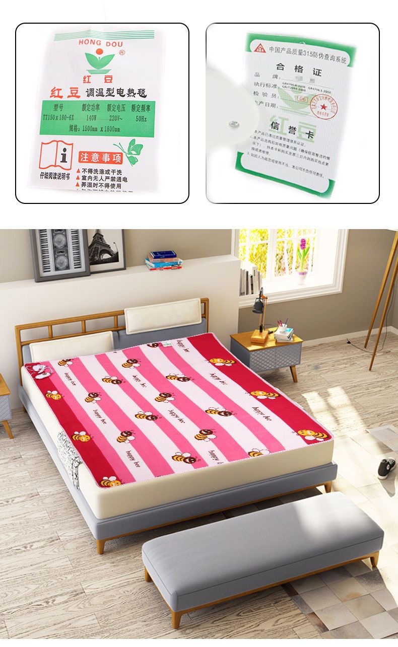 红豆电热毯红豆牌电褥子单双三人加大双控调温智能毛毯加厚学生,批发价,价格:16.86,厂家直销,红豆电热毯红豆牌电褥子单双三人加大双控调温智能毛毯加厚学生,免费拿样。