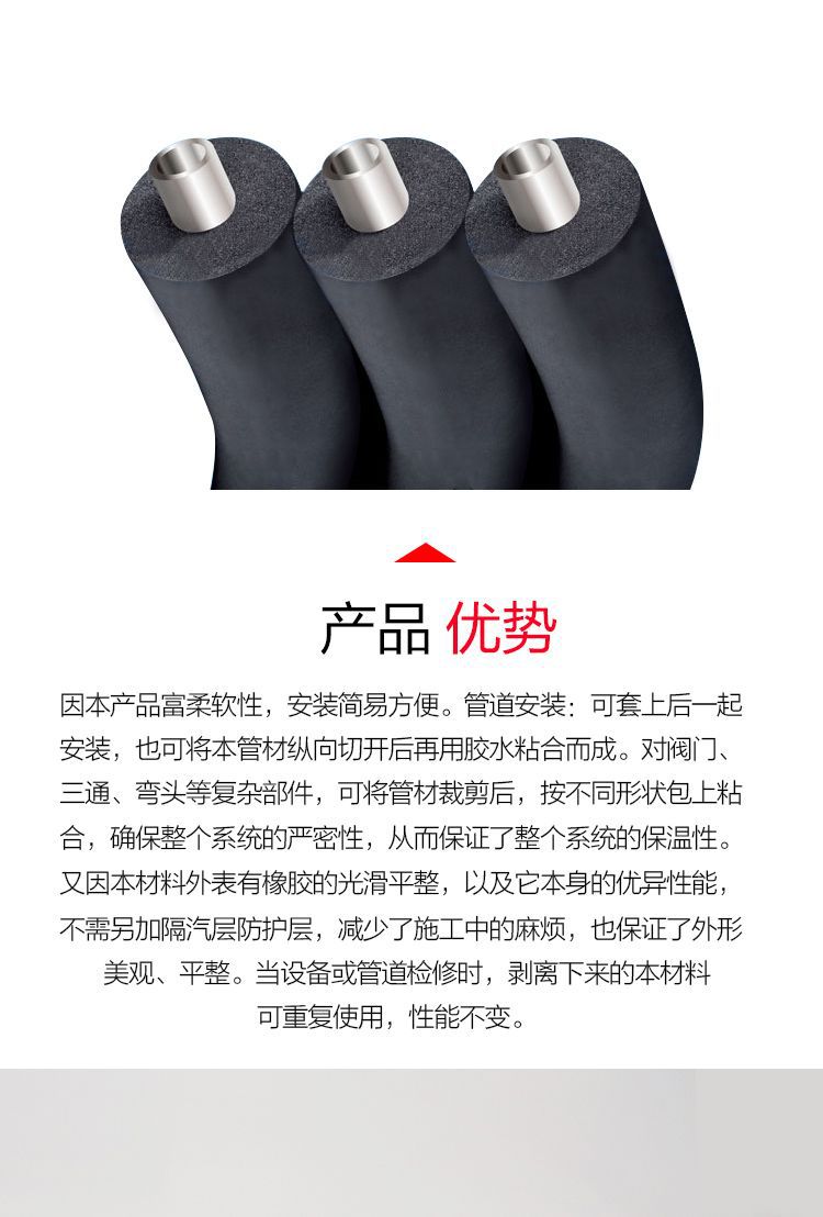 橡塑保温管隔热保温管套室外空调水管太阳能保护套防冻防晒防火管