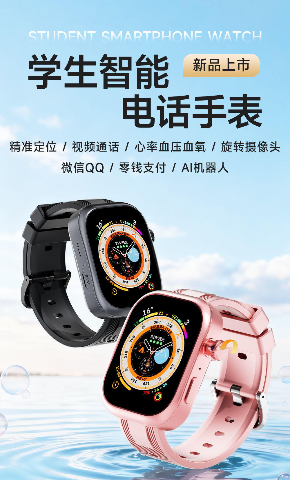 H08 AI学习手机超大电池加硬TP触摸屏抽拉摄像头防水儿童电话手表