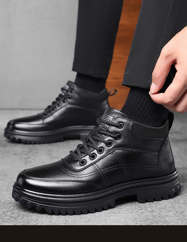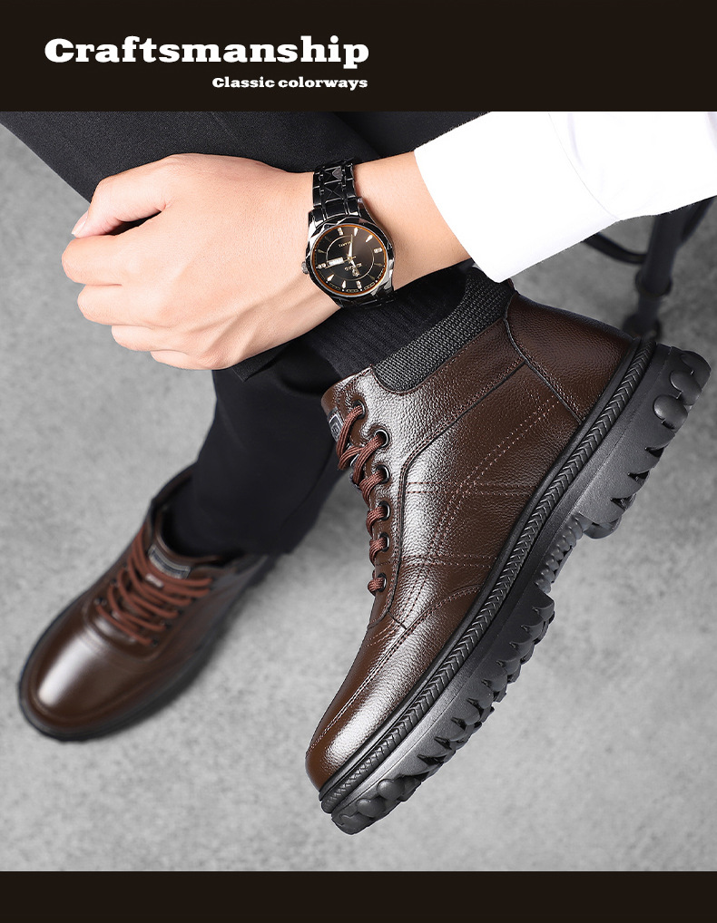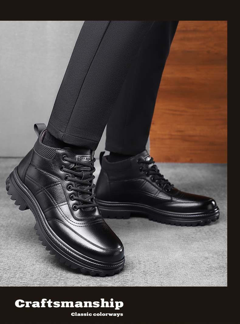 男鞋冬季头层牛皮新款休闲高帮棉鞋男士加绒保暖男士防滑雪地靴子