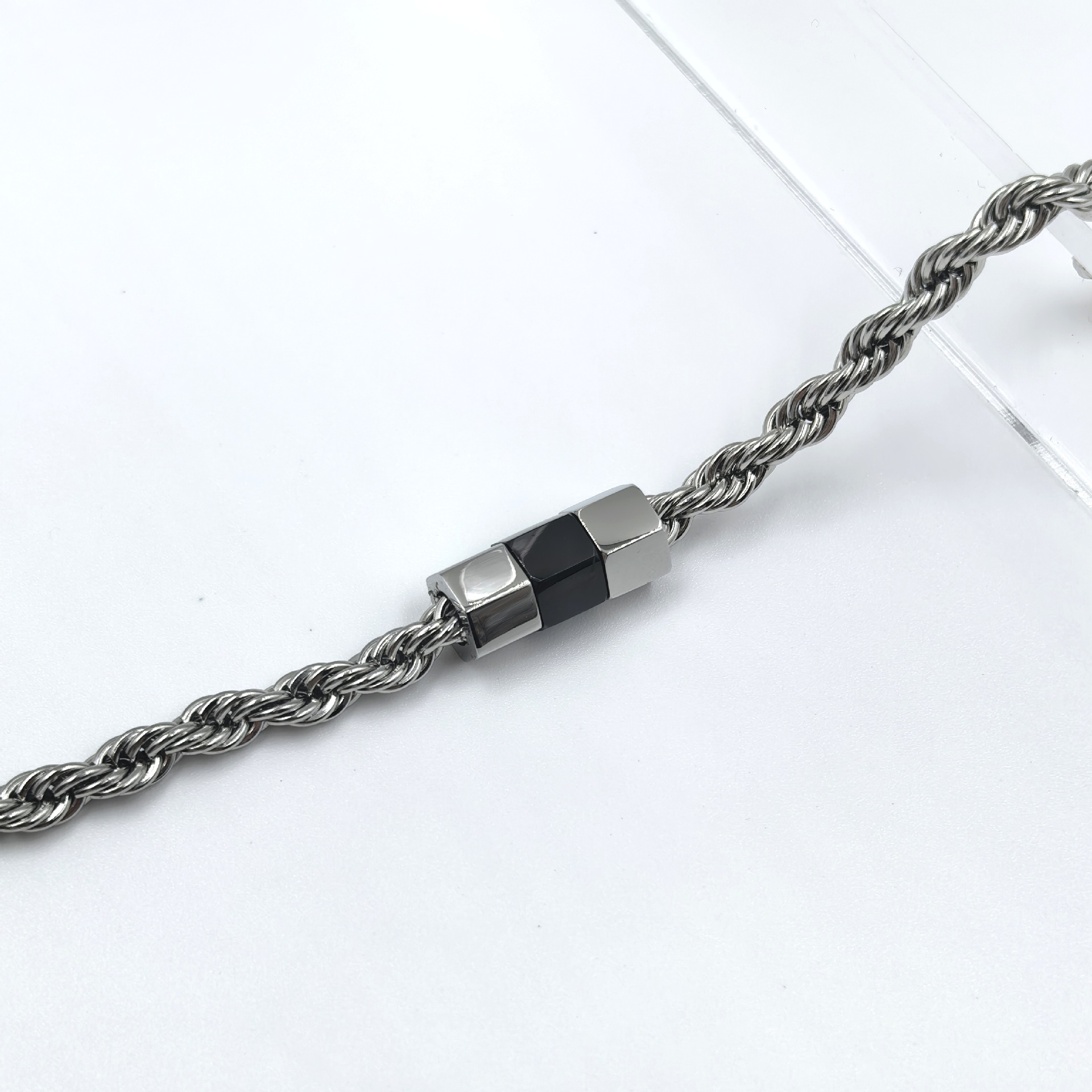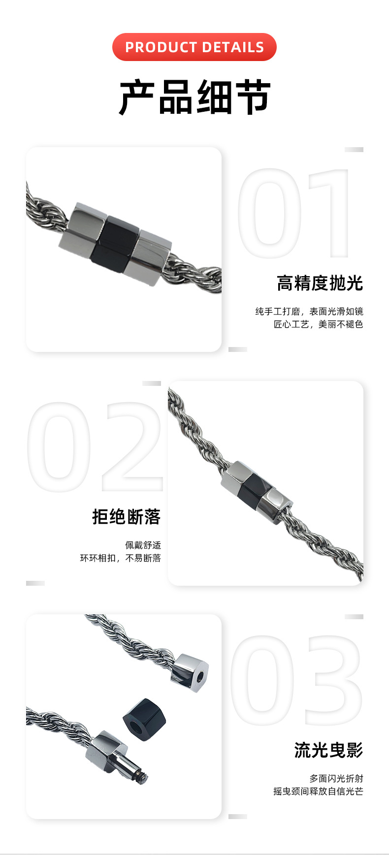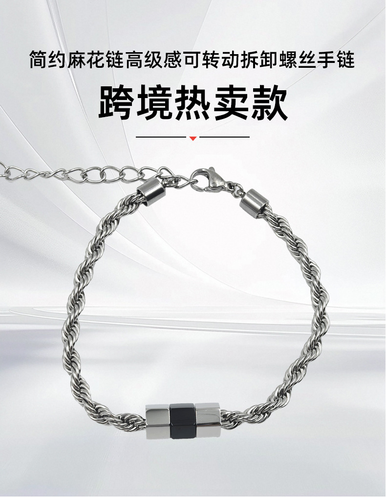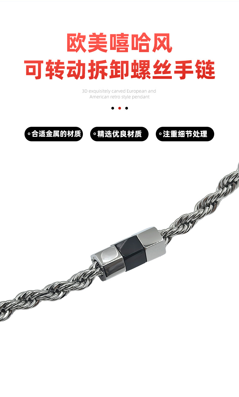 简约不锈钢麻花链 高级感跨境欧美嘻哈手链可转动拆卸螺丝手链