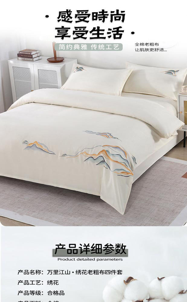 万里江山刺绣纯棉老粗布四件套床上用品家用双人精梳绣花被套床单,批发价,价格:176,厂家直销,万里江山刺绣纯棉老粗布四件套床上用品家用双人精梳绣花被套床单,免费拿样。