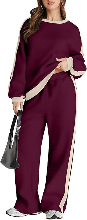 跨境2025秋季新品 女士拼色宽松休闲运动套装阔腿裤两件套