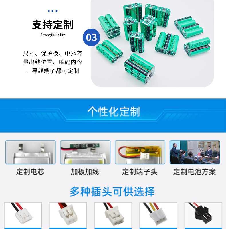 13400固态电芯 7.4V/11.1V/14.8V锂电池组仪器LED灯数码固态电池