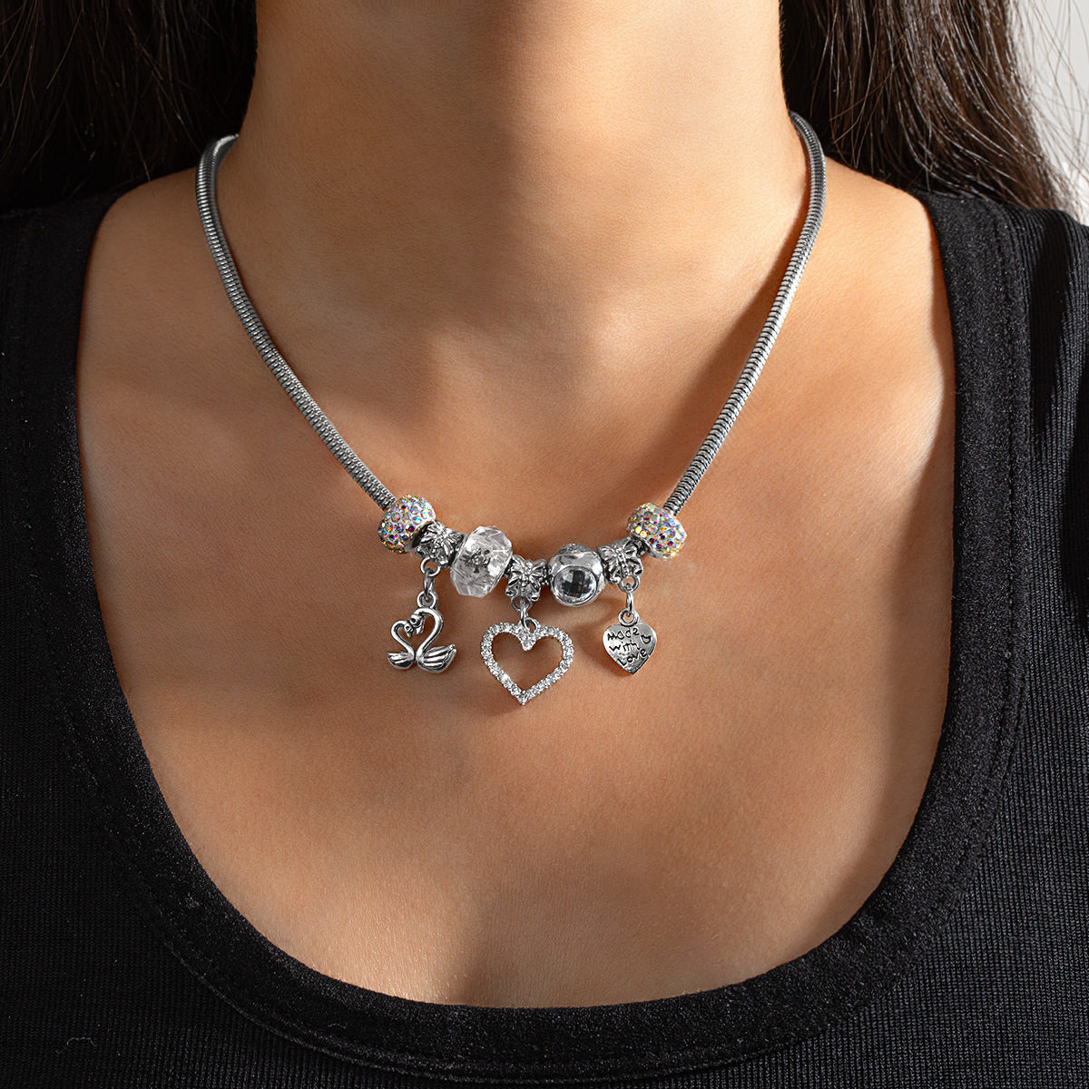气质百搭时尚饰品 轻奢爱心锆石项链套装 简约女款手链吊坠