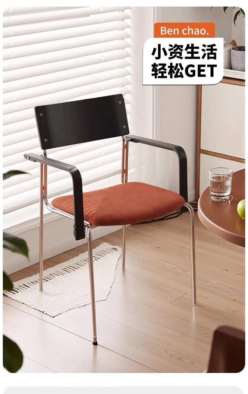 中古铁艺轻奢家用设计师餐椅现代简约丸红靠背椅休闲北欧耐用凳子