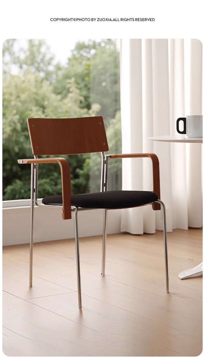 中古餐椅家用实木靠背椅包豪斯不锈钢椅子网红复古椅小户型餐桌椅
