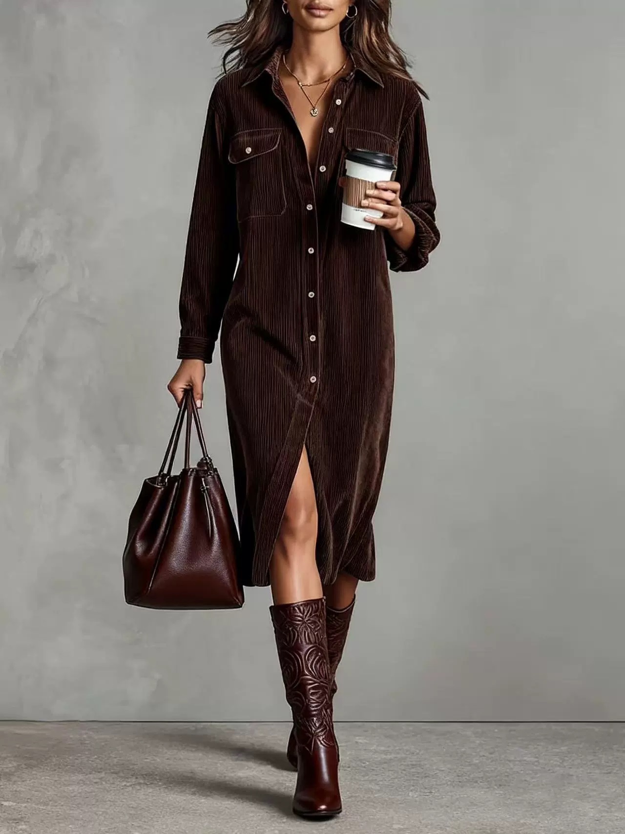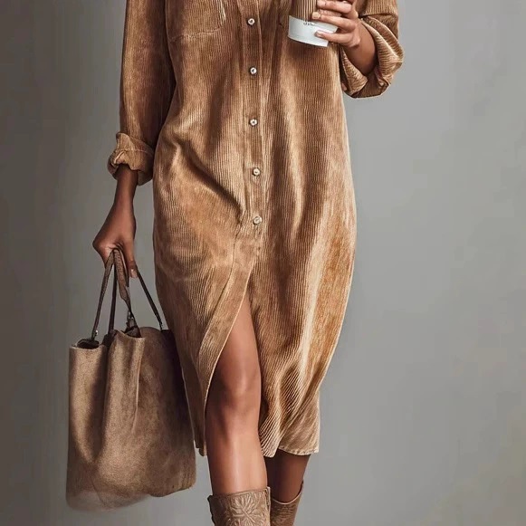 2025欧美跨境亚马逊独立站新款女士纯色灯芯绒翻领衬衣宽松连衣裙,批发价,价格:40,厂家直销,2025欧美跨境亚马逊独立站新款女士纯色灯芯绒翻领衬衣宽松连衣裙,免费拿样。