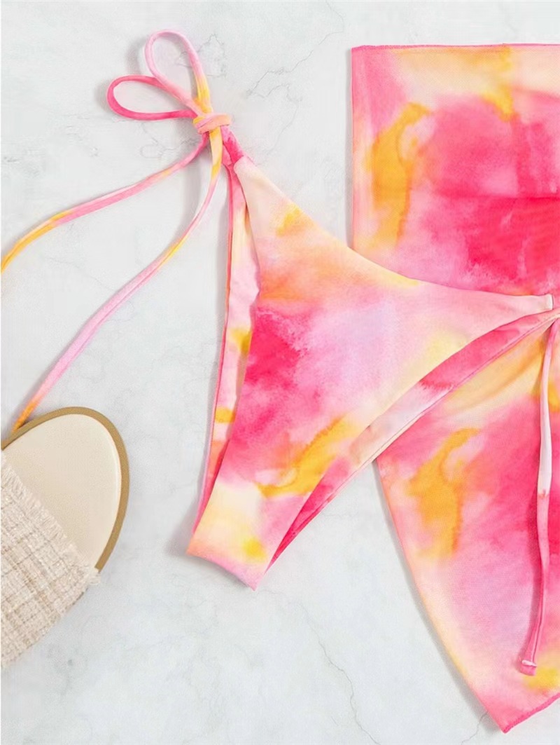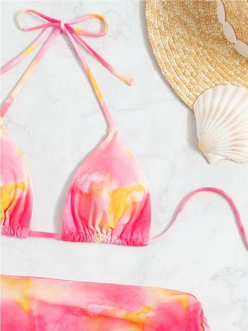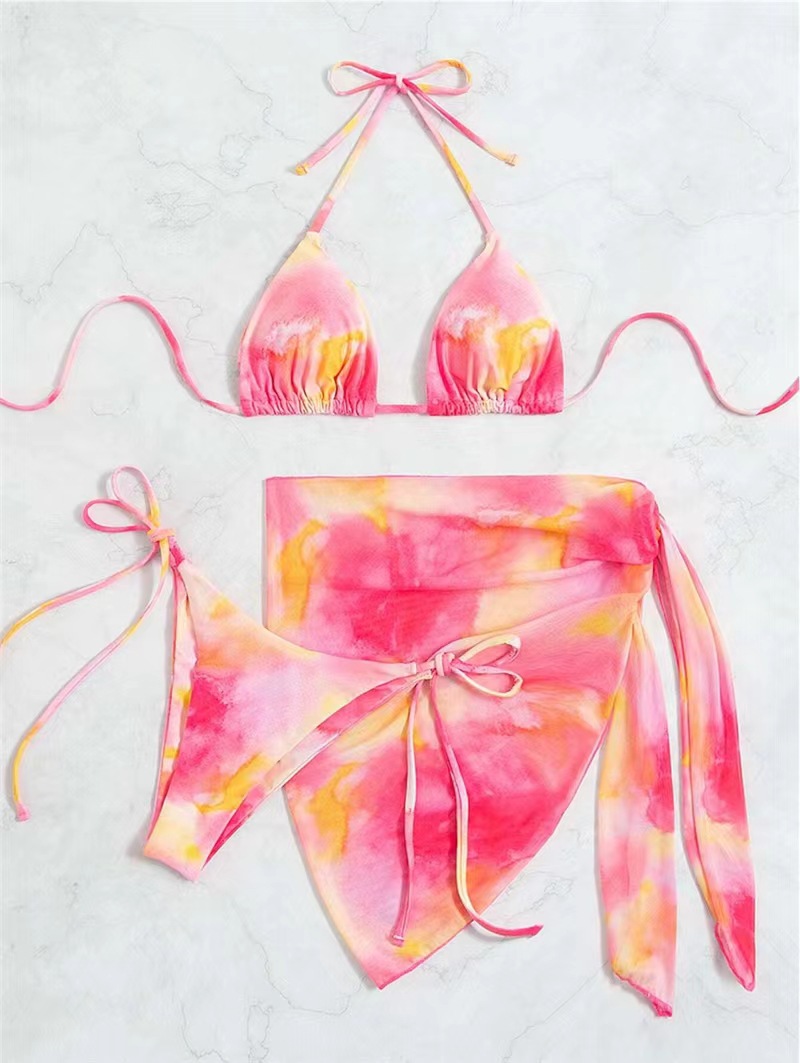 跨境2025欧美泳衣分体三件套裙式扎染ins风速卖通跨境比基尼泳装