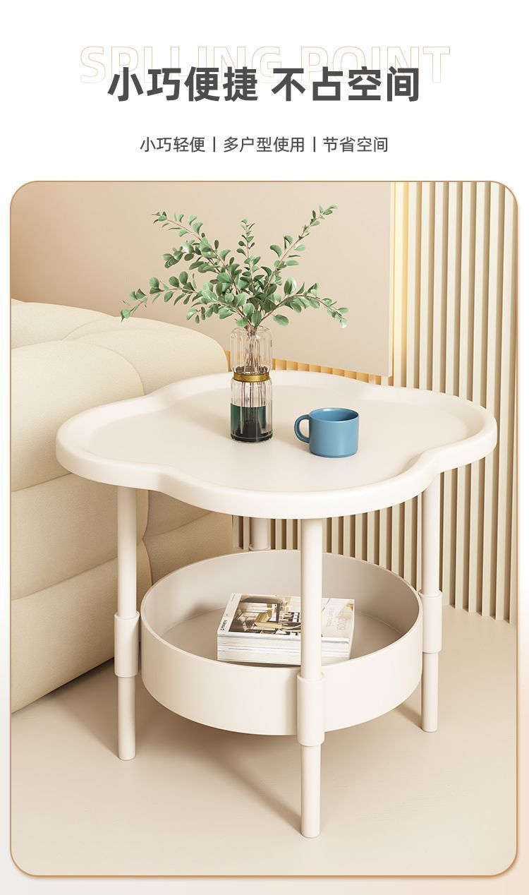 家用客厅四叶草边几稳固床头柜卧室耐用云朵茶桌双层置物床头柜子