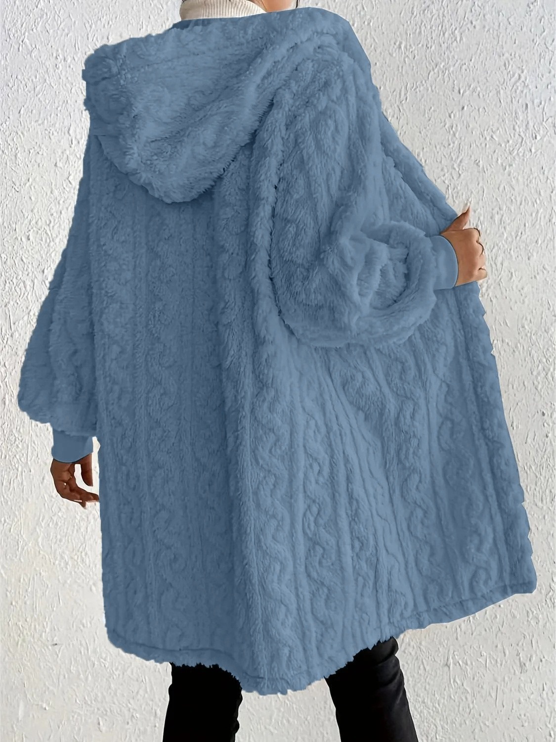 速卖通 Wish ebay2025秋冬欧美女装纯色长袖连帽宽松毛绒绒外套女
