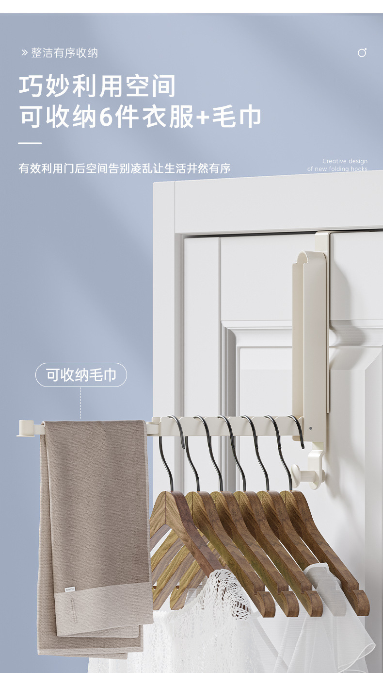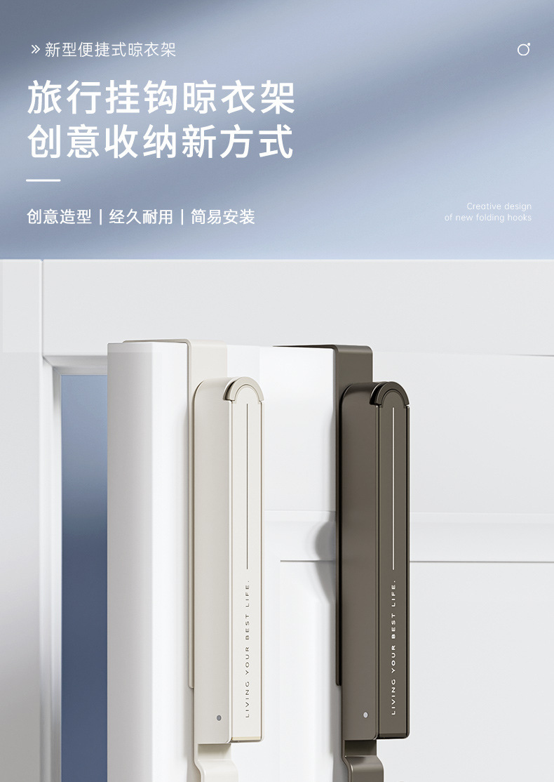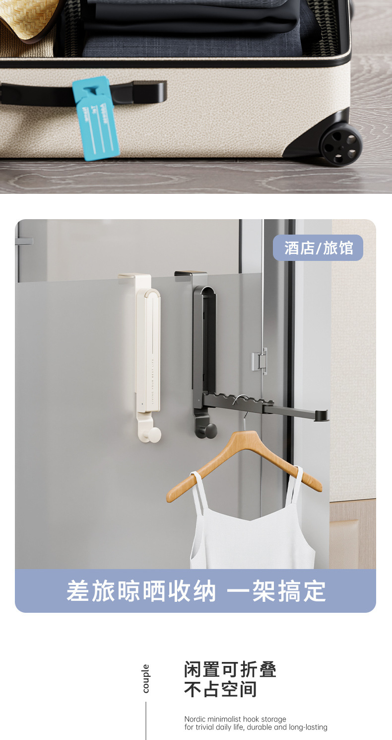 门后晾衣杆挂钩晾晒被子衣服免打孔收纳整理架旅行收纳多功能支架