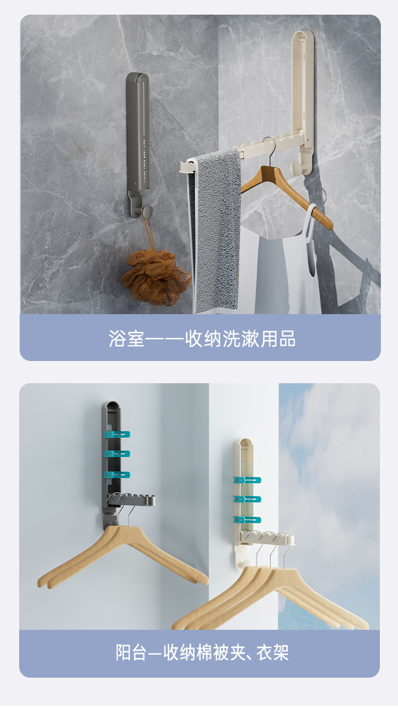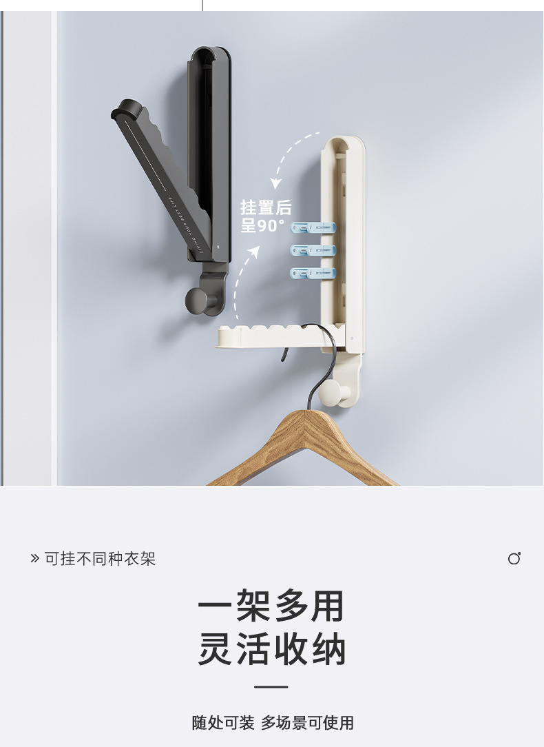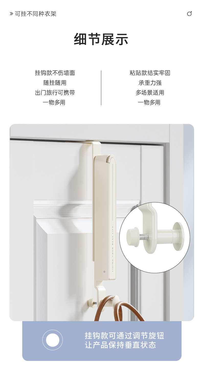 门后晾衣杆挂钩晾晒被子衣服免打孔收纳整理架旅行收纳多功能支架