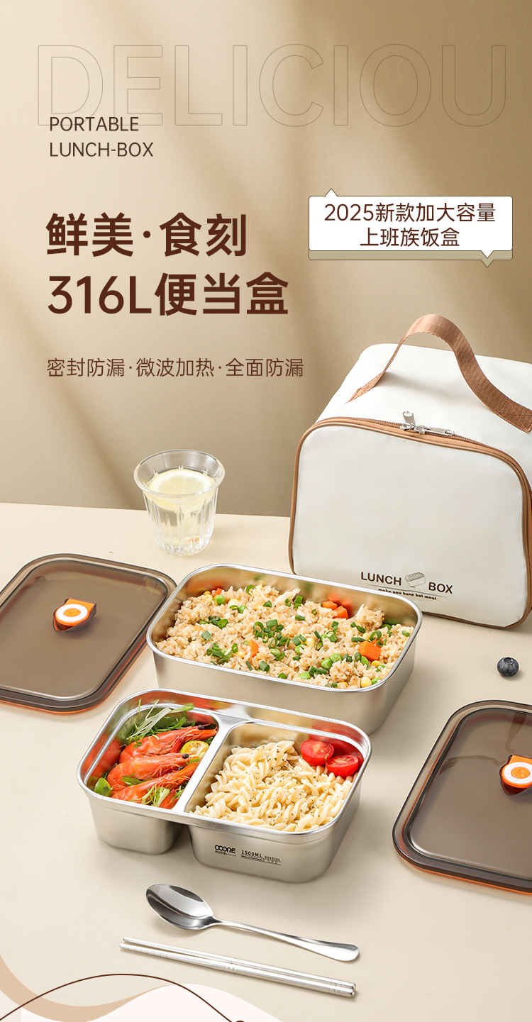 316L不锈钢饭盒微波炉加热上班族带饭密封分格2025新款保温便当盒