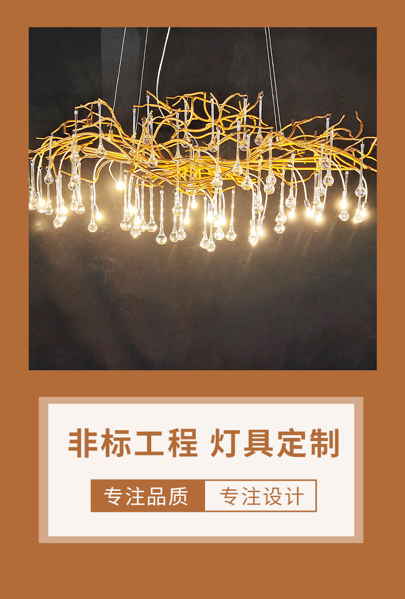定制铝材水滴树枝艺术吊灯 样板间别墅卧室餐厅卧室玻璃树枝吊灯