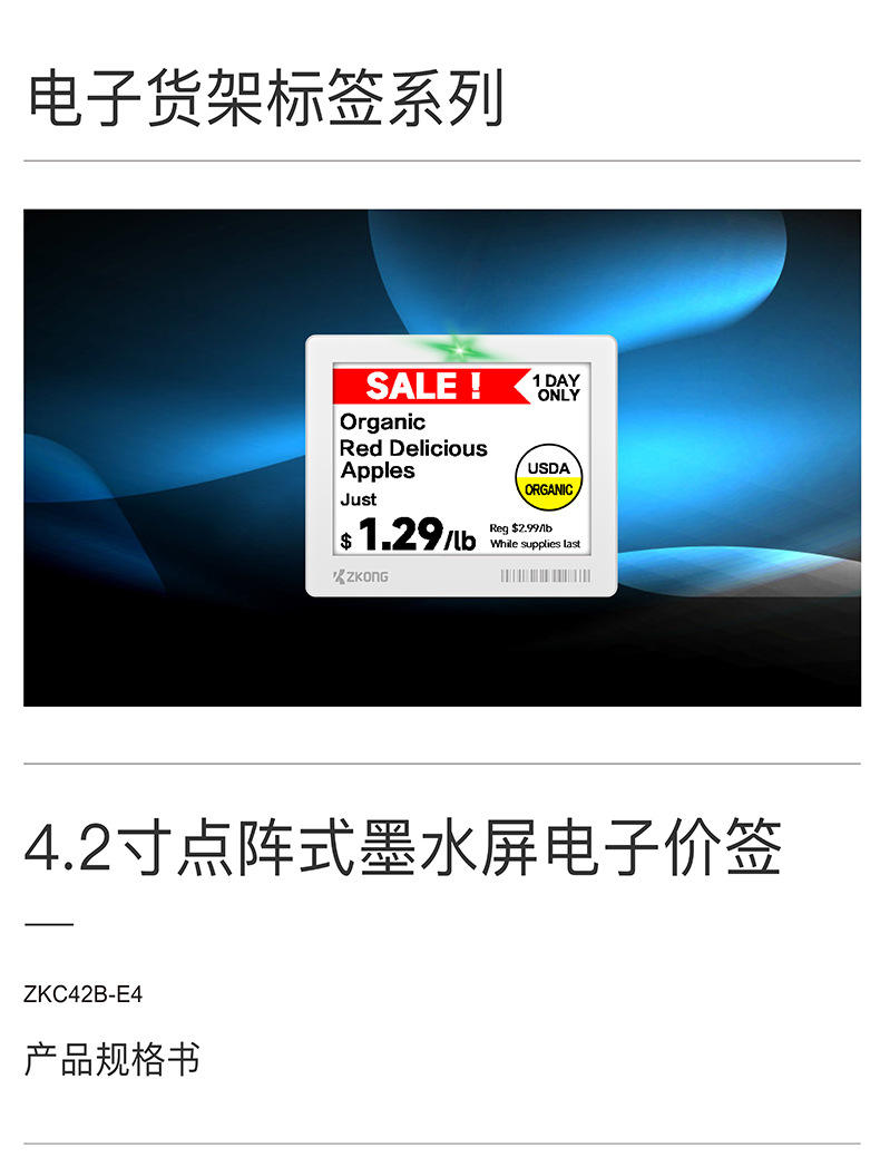 超市商品电子纸标签电子货架标签系列4.2寸点阵式墨水屏电子价签,批发价,价格:113.6,厂家直销,超市商品电子纸标签电子货架标签系列4.2寸点阵式墨水屏电子价签,免费拿样。