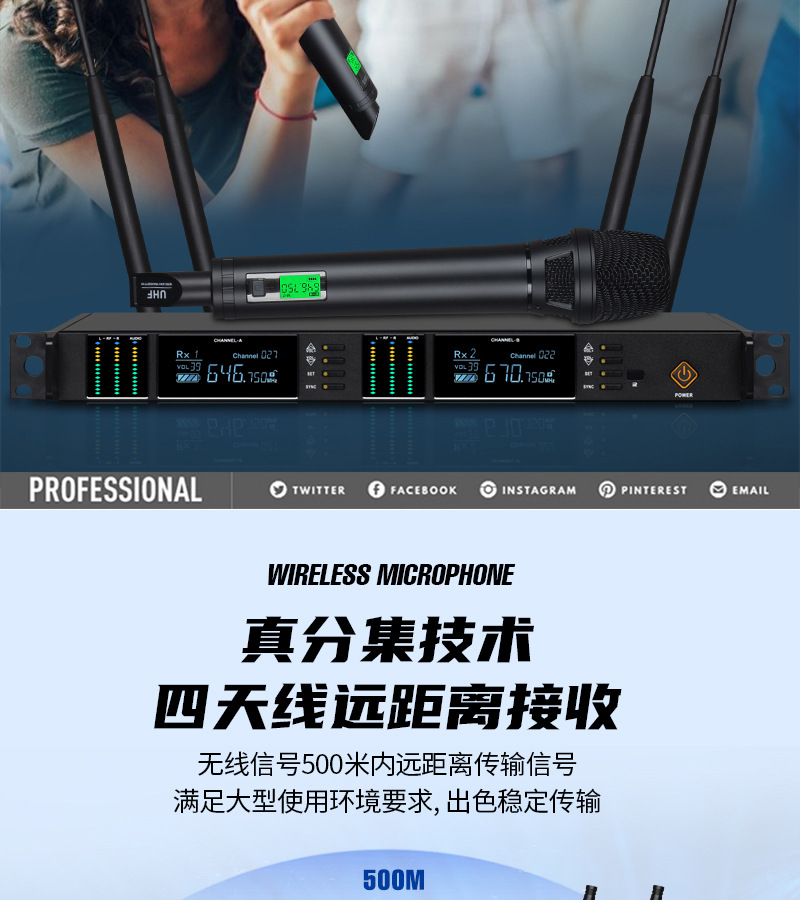 OK970Plus无线话筒U段红外调频舞台专业户外远距离高稳定自动搜频