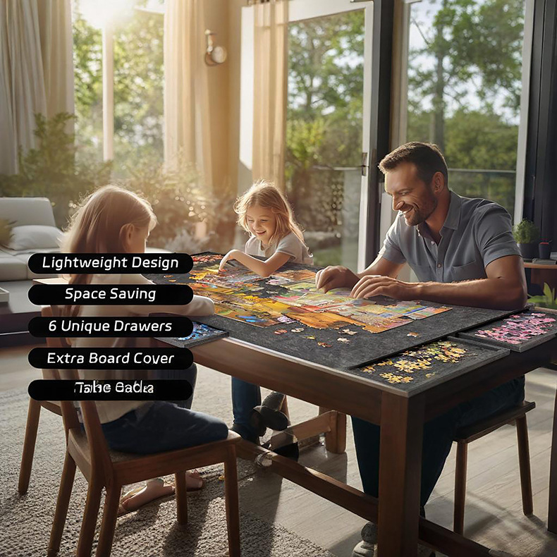 跨境供应拼图毛毡板带支架盖子6抽屉便携式可折叠拼图分类毛毡板