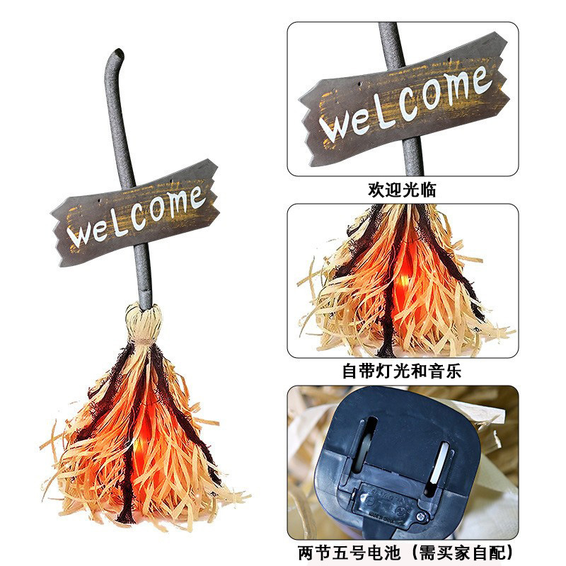 万圣节扫帚女巫魔法道具发光声跨境爆款酒吧鬼屋摆件电动扫把塑料