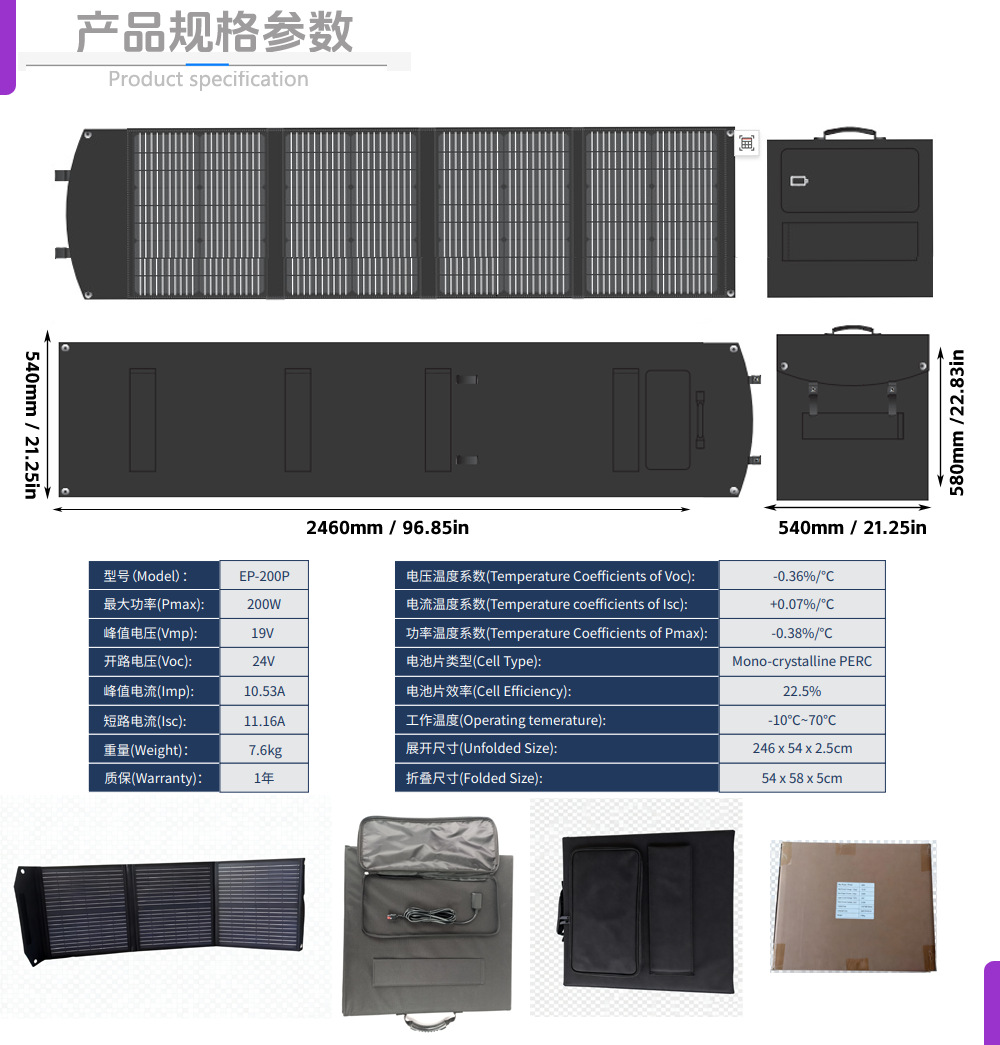 便携式30W60W100W120W200W400W 单晶硅 太阳能板折叠包充电板户外