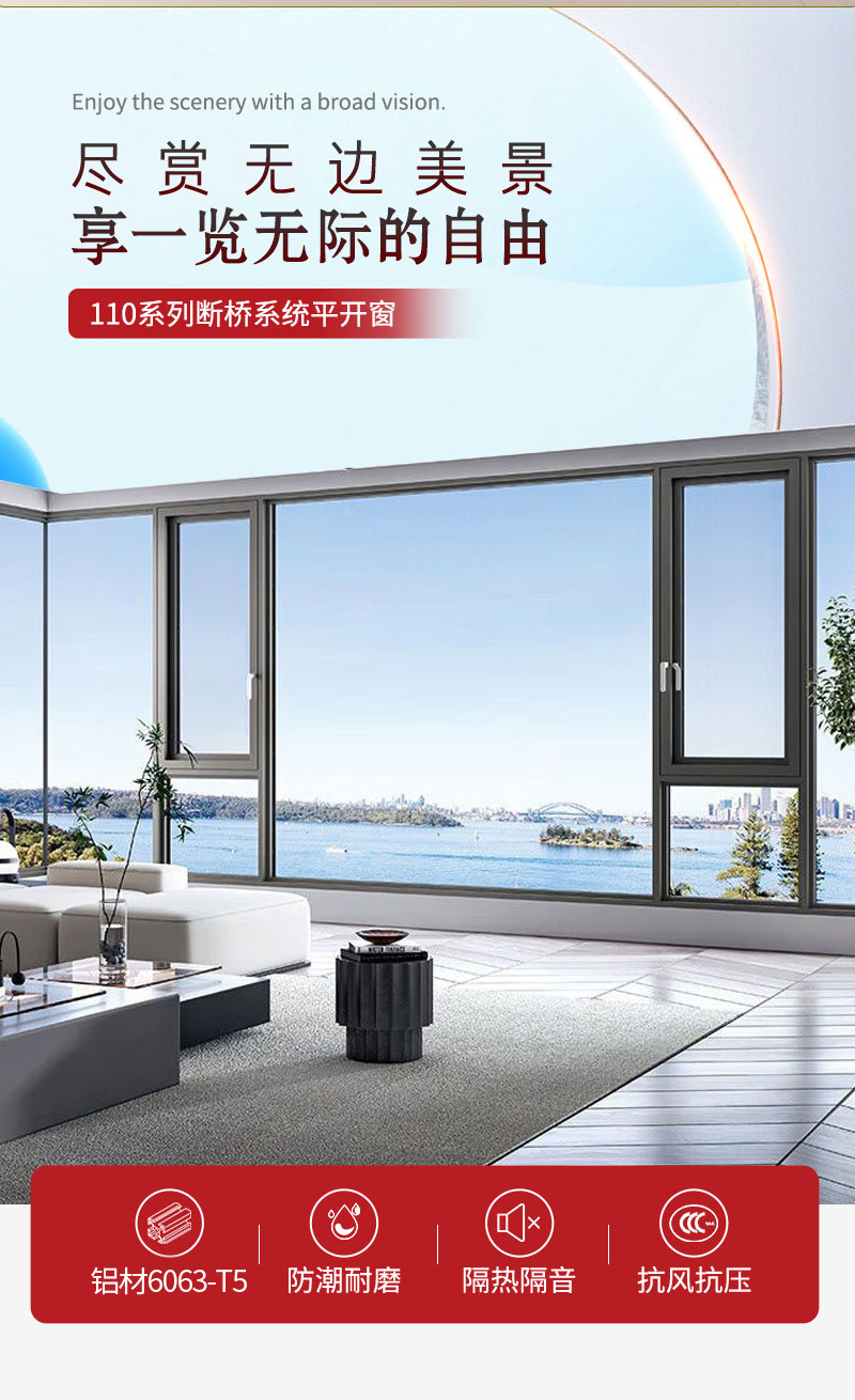 书房儿童房断桥铝通风隔声窗临近马路商品房厕所阳台系统铝合金窗