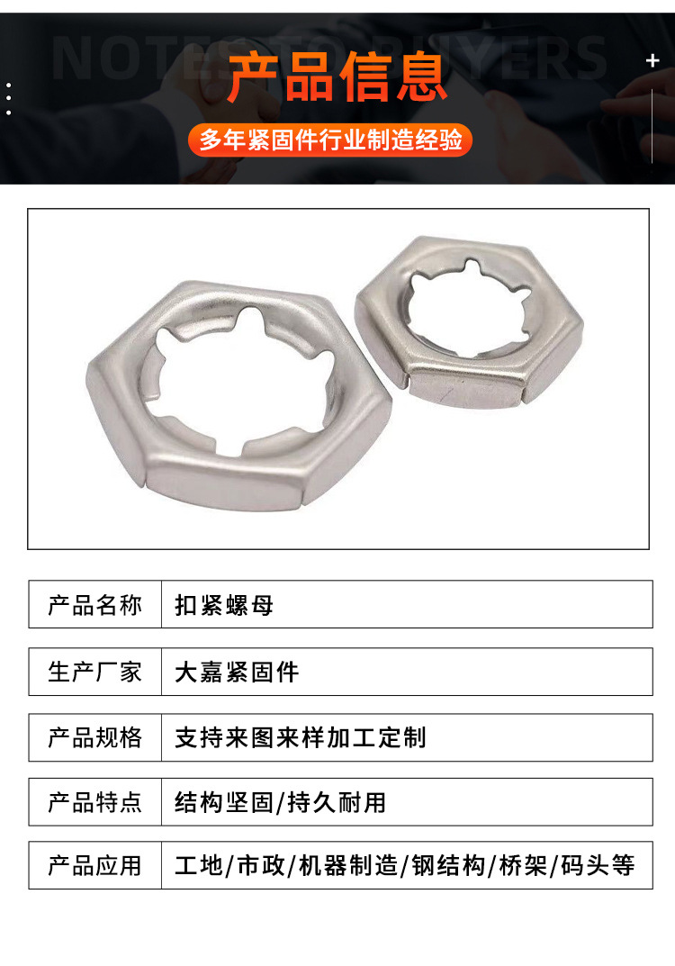不锈钢304扣紧螺母加工定制单扣自锁螺母防松罩扣紧齿轮六角螺母