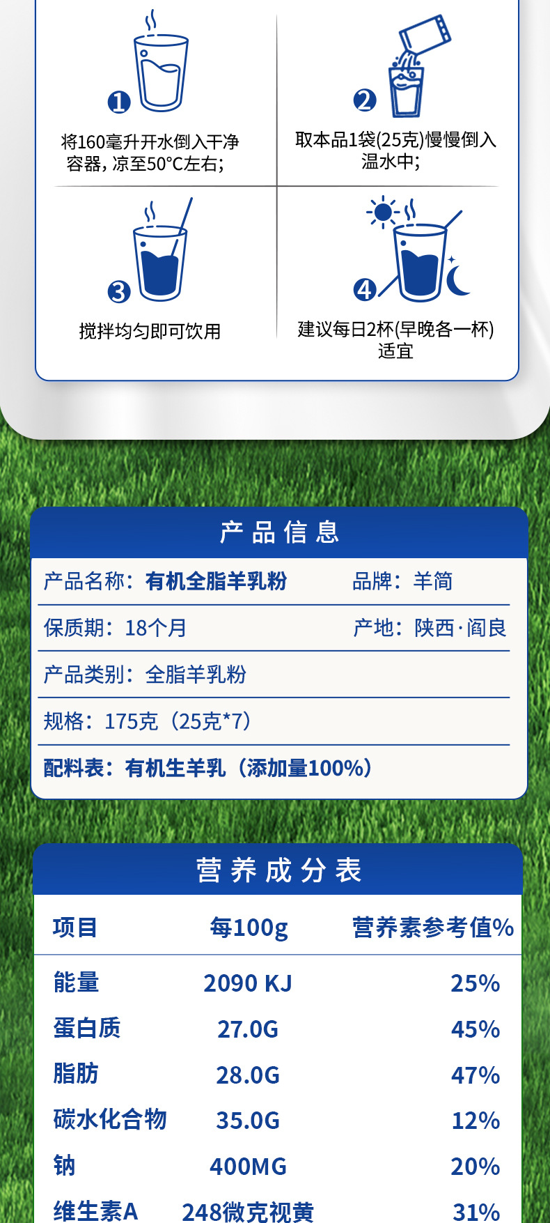 非安诺乳业高钙高蛋白有机全脂羊奶粉175g(25g*7)现货批发