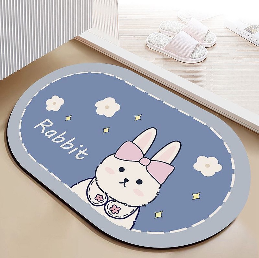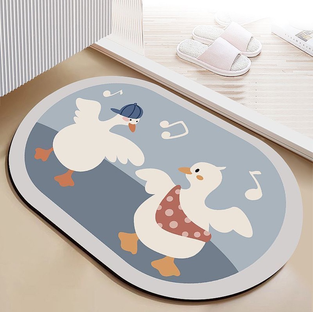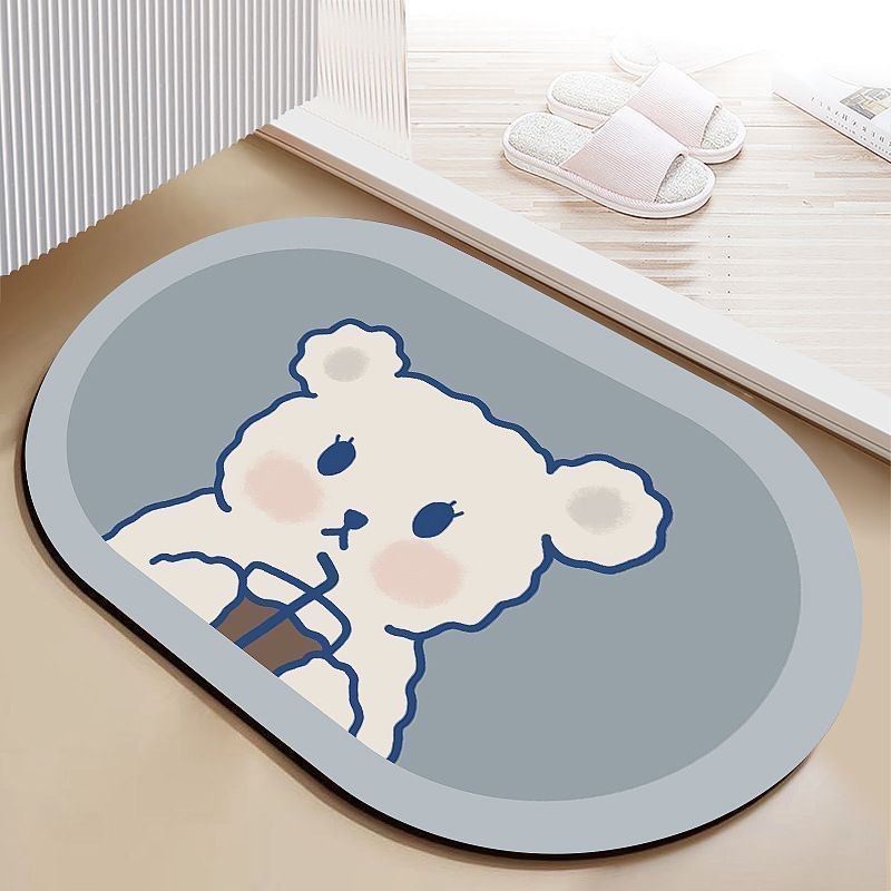 卫生间门口椭圆形防滑脚垫卡通可爱浴室入口硅藻泥地垫吸水地垫
