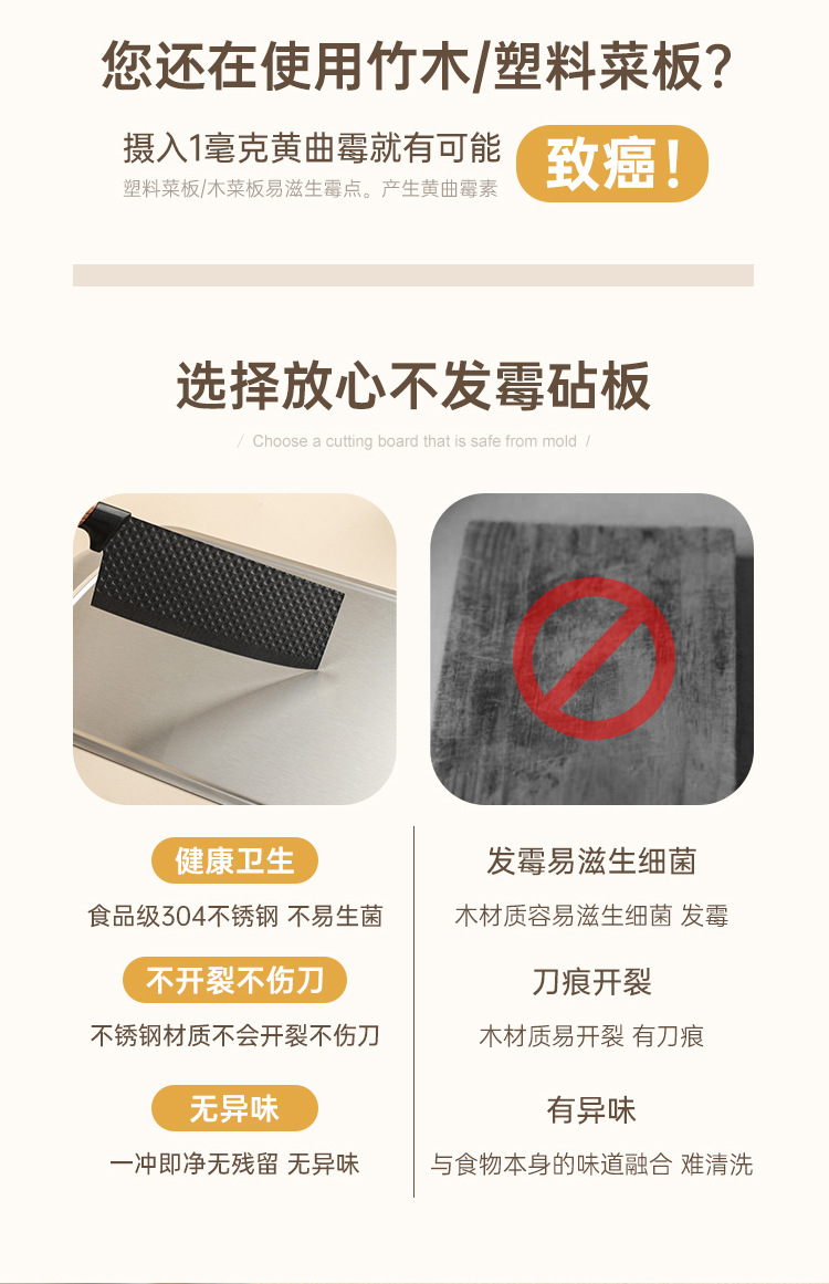 304不锈钢食品级菜板抗菌防霉家用切菜案板和面砧板大号擀面板