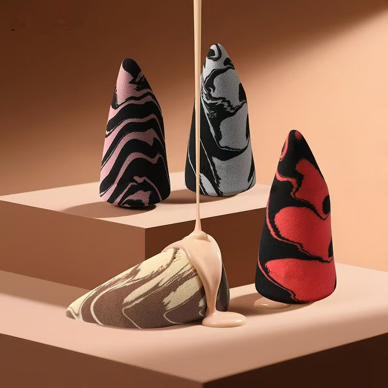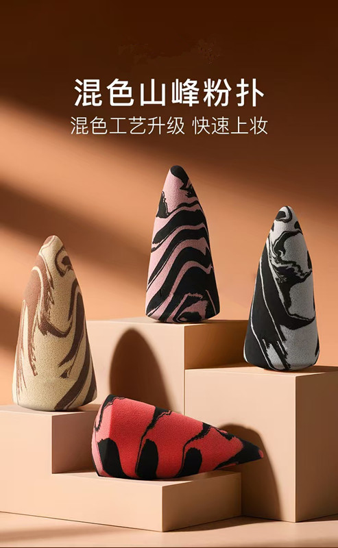 双色大理石纹山峰异形手指美妆蛋巨软海绵蛋干湿两用粉扑