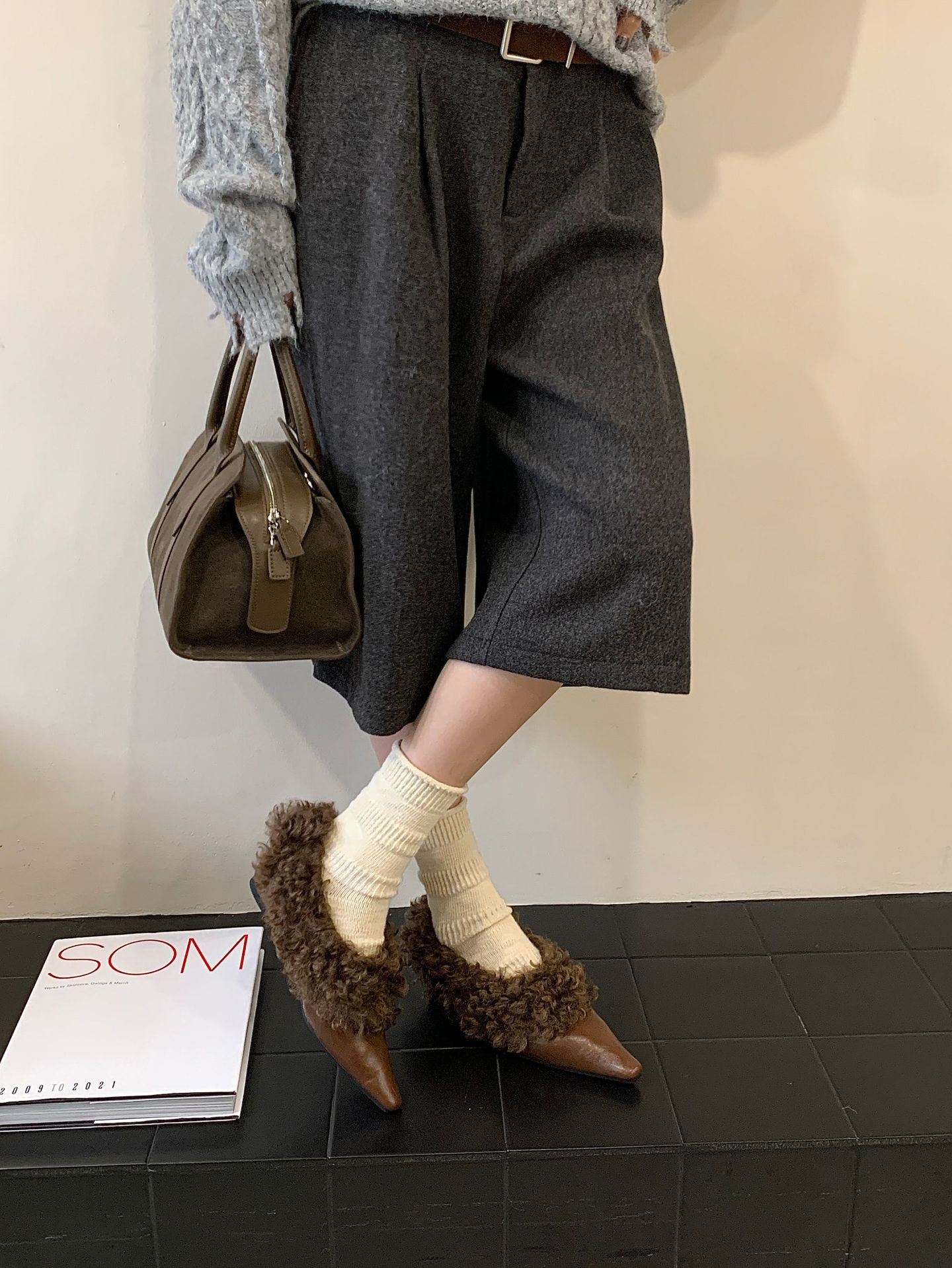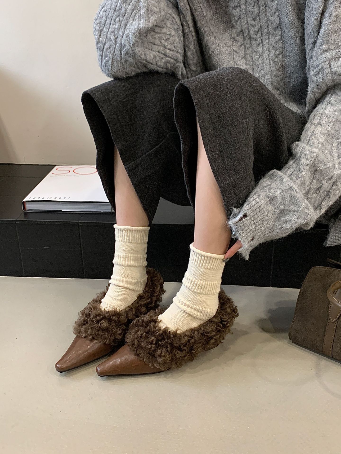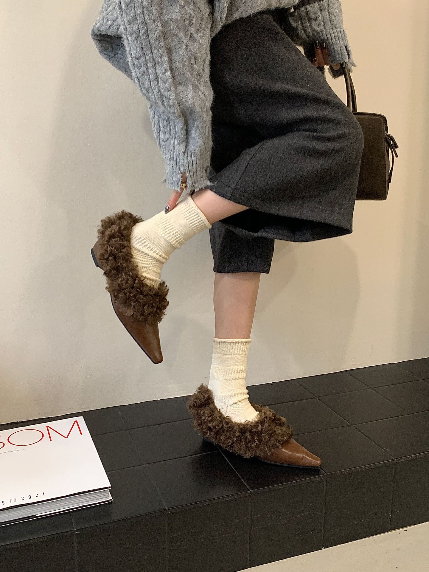 法式高级感方头小毛毛鞋2025皮质面加绒保暖棉鞋单鞋玛丽珍毛毛鞋