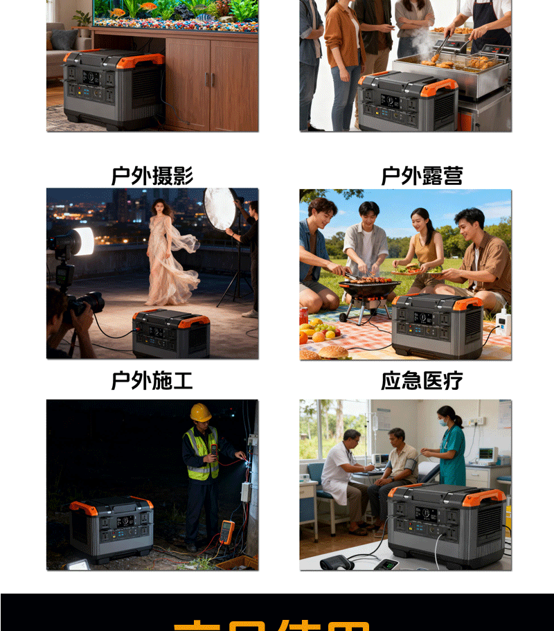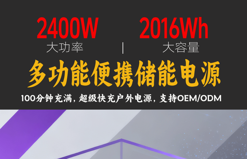 2400W移动户外电源2016Wh应急用 储能便携备用批发磷酸铁锂太阳能