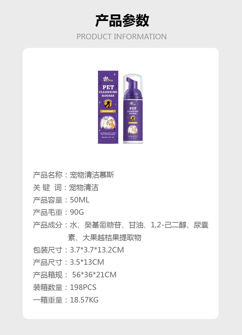EELJOY 宠物清洁慕斯 温和成分清洁异味保持宠物毛发顺滑亮泽