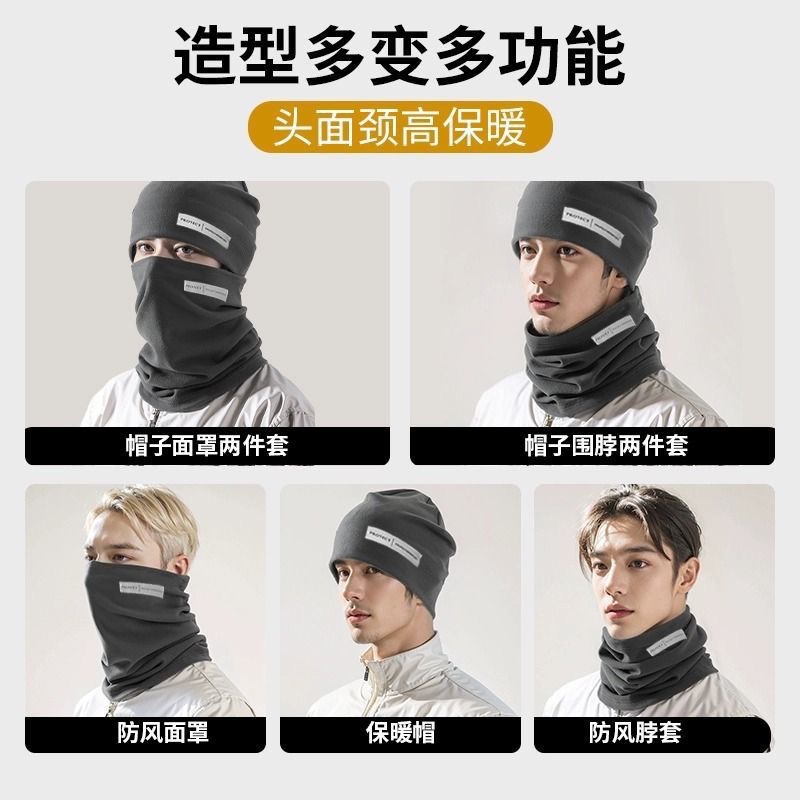 保暖套装冬季围脖户外防寒加绒加厚护颈脖套骑行滑雪防风面罩帽子