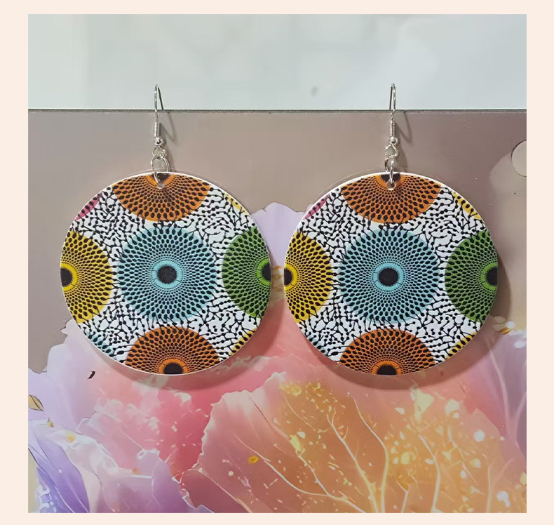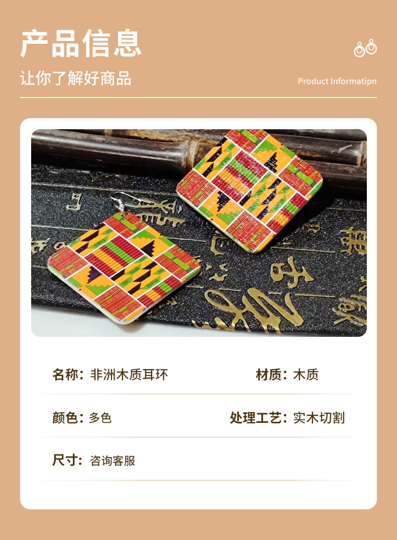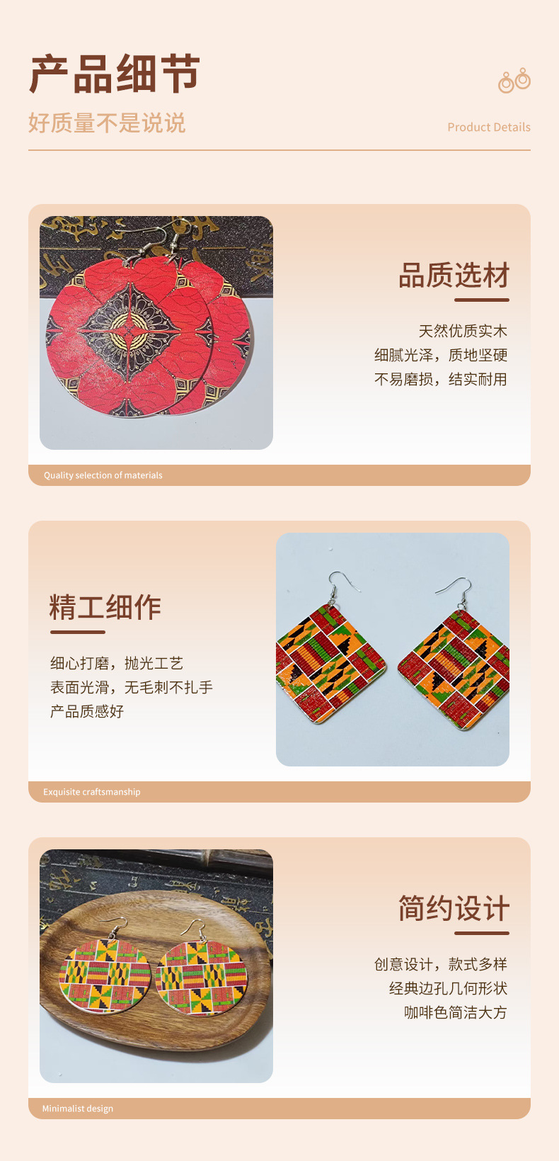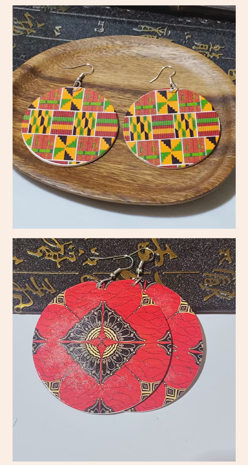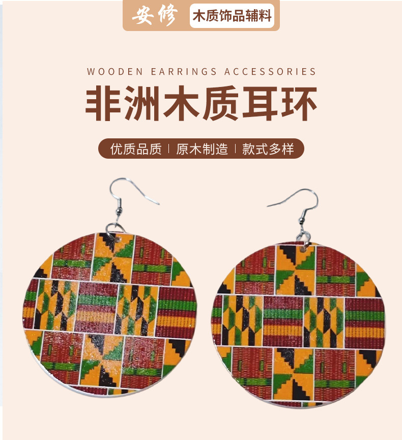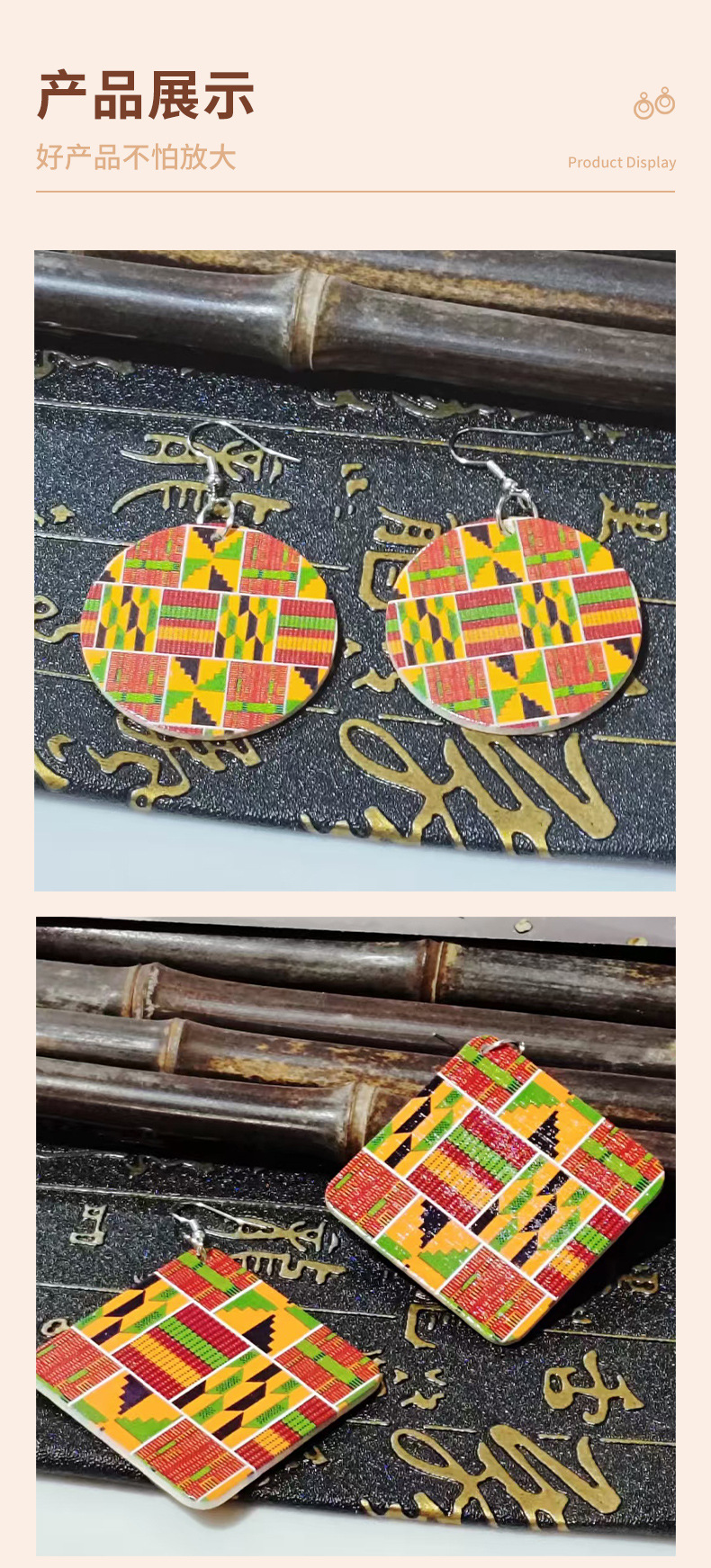 厂家直销欧美流行爆款夸张非洲木质耳环图案系列B488双面印刷