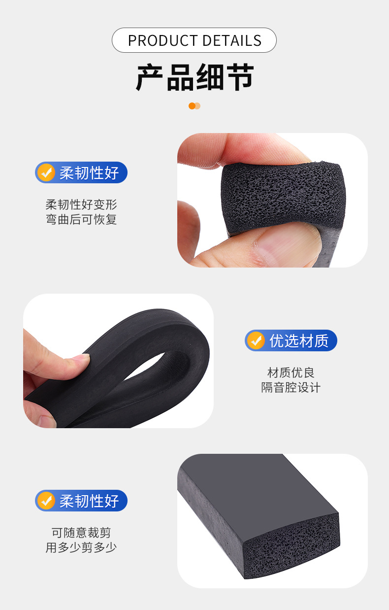 三元乙丙橡胶发泡密封条实心海绵条隔音填缝条防撞耐油防尘橡胶条