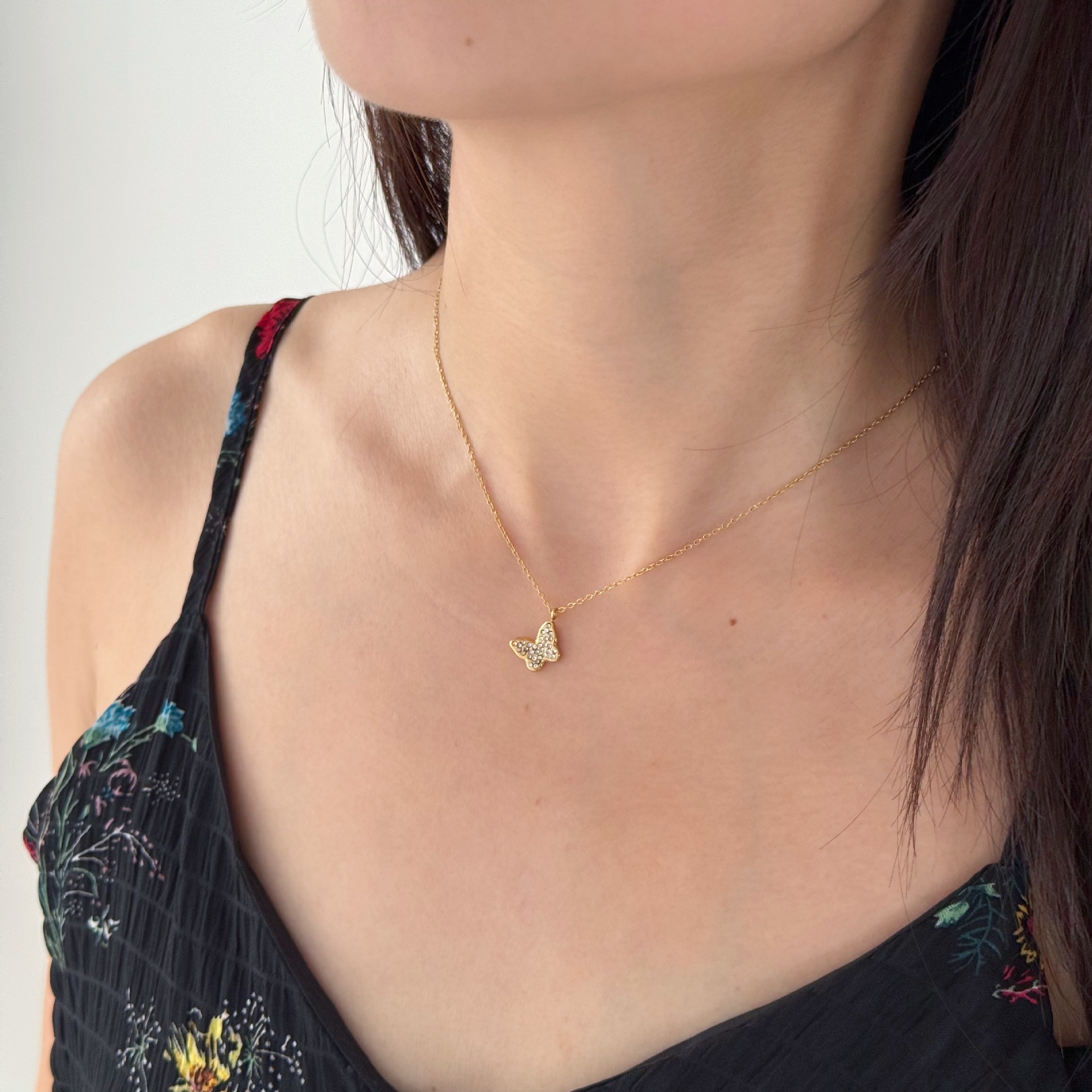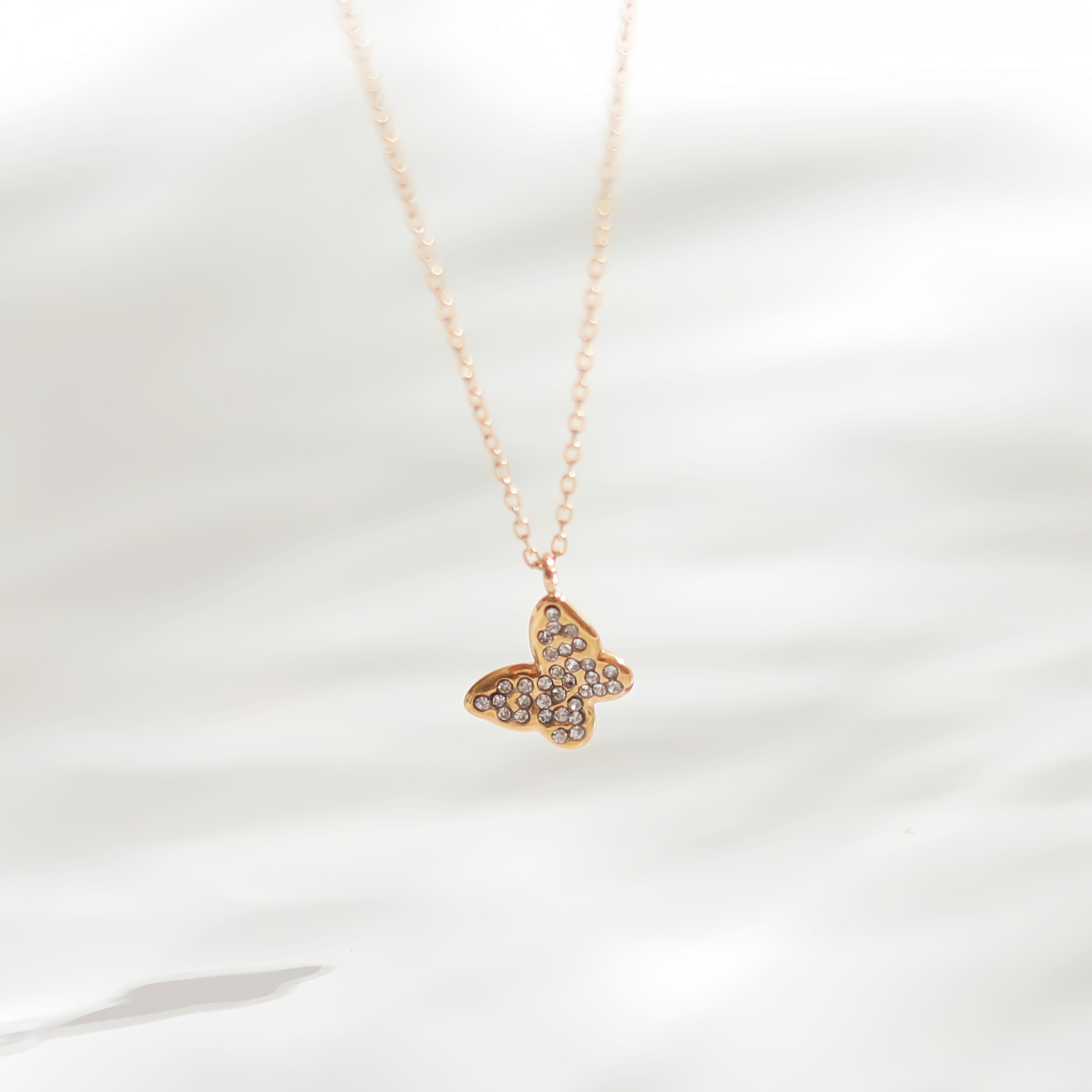 高级甜美镶钻蝴蝶钛钢项链女轻奢小众设计锁骨链百搭颈链饰品配饰