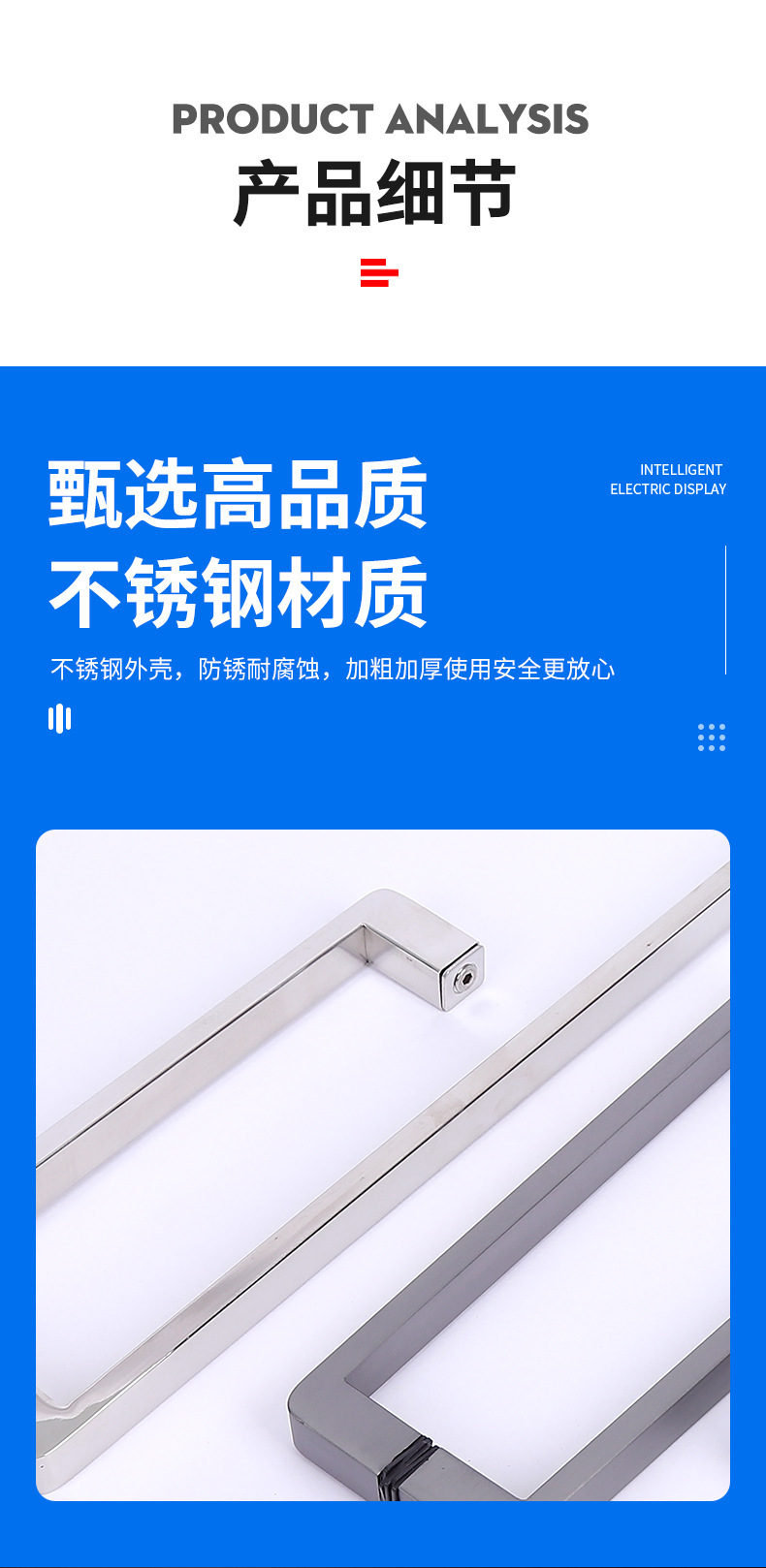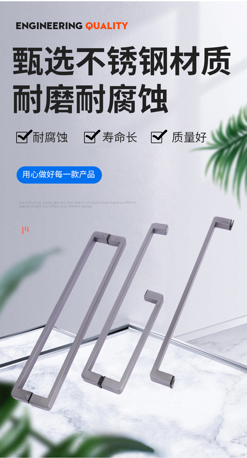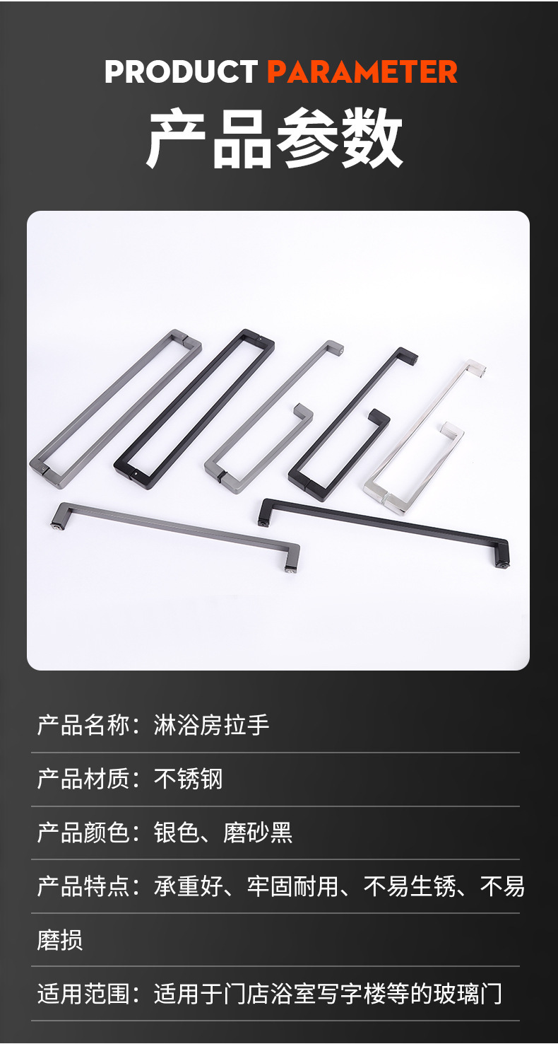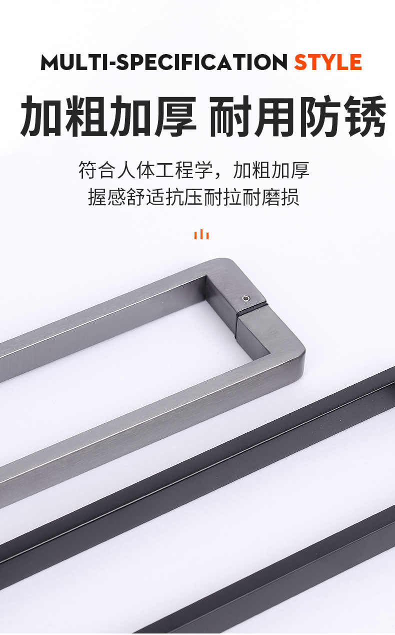 简约哑黑方管淋浴房拉手浴室玻璃门把手304不锈钢推拉门孔距440拉