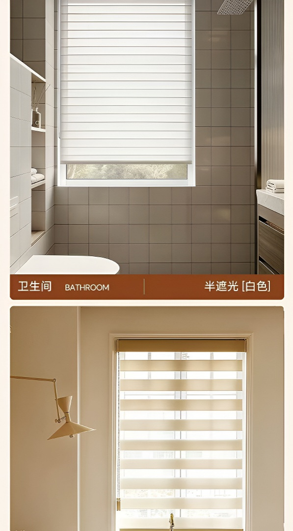 防水柔纱帘双层工程卷帘免打孔电动浴室厨房办公室客厅升降窗帘