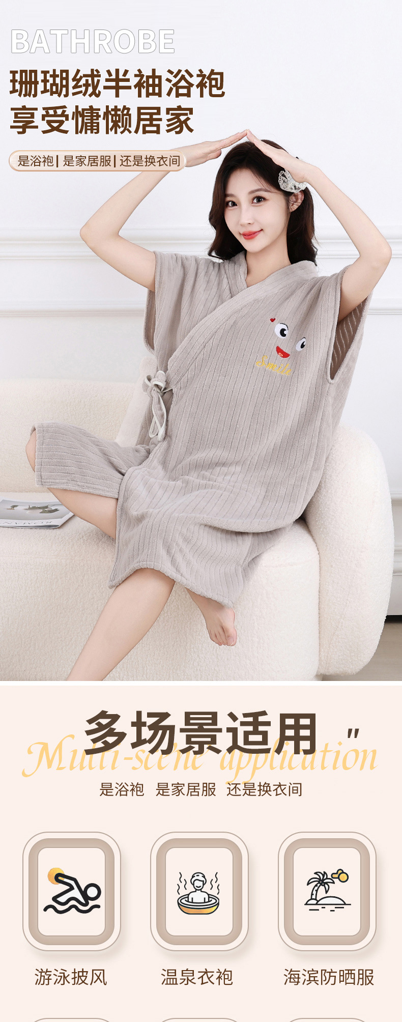 可穿式浴巾女家居服睡袍珊瑚绒家用吸水速干浴裙秋冬浴衣酒店绑带